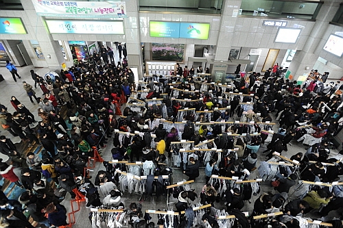 ºÎõ½Ãû ·Îºñ¿¡¼ ÁøÇà ÁßÀÎ ±³º¹ ¹°·ÁÀԱ⠳ª´®ÀåÅÍ¿¡ ¾Ë¶ãÇÏ°Ô ±³º¹À» À常ÇÏ·Á´Â Çлý°ú Çкθðµé·Î ºÕºñ°í ÀÖ´Ù.