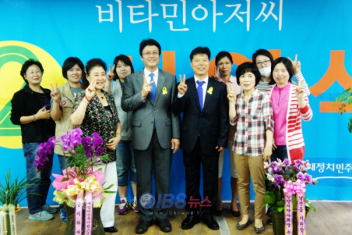 Áö³ 20ÀÏ °æ±âµµÀÇ¿ø ºÎõ 7¼±°Å±¸(°í°µ¿, °í°º»µ¿, ¼º°îµ¿) »õÁ¤Ä¡¹ÎÁÖ¿¬ÇÕ ¼¿µ¼® °æ±âµµÀÇ¿ø Èĺ¸ ¼±°Å»ç¹«¼Ò °³¼Ò½Ä¿¡¼ ±è¸¸¼ö ºÎõ½ÃÀåÈĺ¸¿Í ÇÔ²² Æ÷Å©·Î ¿À·»Áö¸¦ ÂïÀ¸¸é¼ 'ºñŸ¹Î ¾ÆÀú¾¾¸¦ Âï¾î´Þ¶ó'´Â ÆÛÆ÷¸Õ½º¸¦ ÁøÇàÇß´Ù.