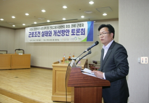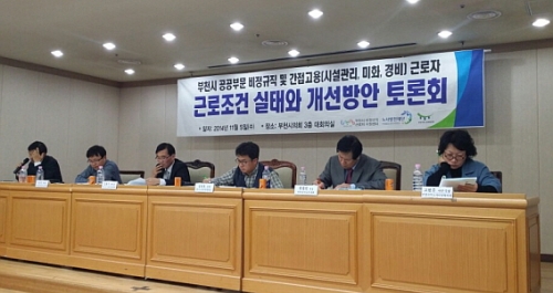 Áö³ 5ÀÏ ¿¸° ºÎõ½Ã °ø°øºÎ¹® ºñÁ¤±ÔÁ÷ ±Ù·ÎÁ¶°Ç ½ÇÅÂ¿Í °³¼±¹æ¾È Åä·Ðȸ¿¡¼ Âü°¡ÀÚµéÀº ºñÁ¤±ÔÁ÷ ±Ù·ÎÀÚµéÀÇ ±Ù·ÎÁ¶°Ç °³¼±ÀÌ Áö¹æÀÚÄ¡´ÜüÀåÀÇ ÀÇÁö¿¡ ´Þ·È´Ù´Â Á¡À» °Á¶Çß´Ù.