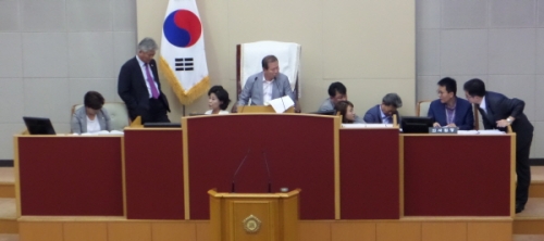 ÀÌ´Â 15ÀÏ ¿ÀÀüºÎÅÍ ÁøÇàµÈ Á¦ 204ȸ ºÎõ½ÃÀÇȸ 3Â÷ º»È¸ÀÇ¿¡¼ ±×µ¿¾È ȸ±âÁß ½É»çÇÑ ¾È°ÇÀ» ó¸®ÇÑ ÈÄ ³¡À¸·Î "2015³â Á¦1Â÷ ¼ö½ÃºÐ °øÀ¯Àç»ê °ü¸®°èȹ¾È"À» Àç»óÁ¤ÇÏ¸é¼ ÀÇ¿øµéÀÇ ´ÙÅùÀ¸·Î ¹øÁö°í, ÀÇÀå¼®À» Á¡°ÅÇÏ´Â µîÀÇ ¹Ý¹ß ÇàÀ§·Î ¼Ó°³µÇÁö ¸øÇϰí ÀÖ´Ù.