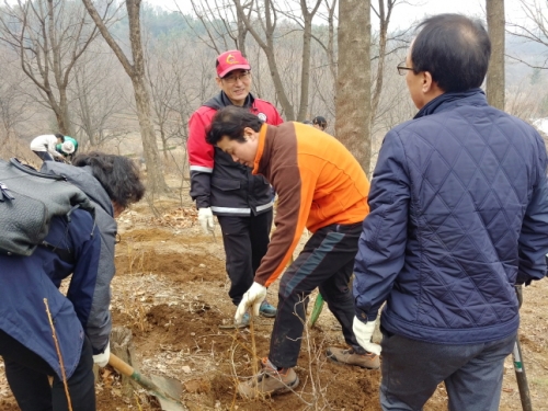 ³ª¹« ½É±â´Â Áø´Þ·¡ ÃàÁ¦Àå À§ÂÊ ¾ç¹æÇâÀ¸·Î ³ª´µ¾î ¿Ã¶ó°¡ »ê ÁßÅÎ Áø´Þ·¡°¡ µå¹°°Ô ½ÄÀçµÈ °ø°£¿¡ ½É¾úÀ¸¸ç ³ª¹«¸¦ ½É´Â ¾ó±¼µé ¸ðµÎ°¡ Ȱ¦ ¿ôÀ¸¸ç Áñ°Å¿öÇÏ´Â ¸ð½ÀÀ̾ú´Ù.