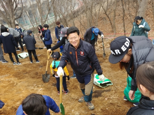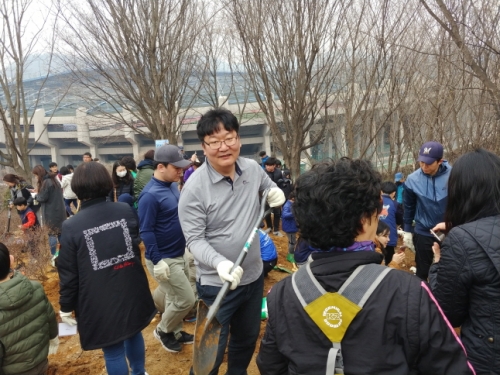 À̳¯ Çà»ç¿¡ ¾Õ¼ ±è¸¸¼ö ºÎõ½ÃÀåÀº "2010³âºÎÅÍ 7³â µ¿¾È 280¸¸ ±×·ç ³ª¹«¸¦ ½É¾î ¿ÃÇØ 40¸¸ ±×·ç¸¦ ´õ ½ÉÀ¸¸é 320¸¸ ±×·ç¸¦ Àӱ⠳» ½É´Â °ÍÀ¸·Î °ø¾àÀ» ÁöŰ°Ô µÇ¾î »ÑµíÇÏ´Ù"¸ç "³ª¹« ÇÑ ±×·ç°¡ 4¸íÀÌ ¼û ½¬´Â »ê¼Ò¸¦ °ø±ÞÇÑ´Ù¸ç ³ª¹« ½É´Â ½Ã¹ÎÀÌ ¸ÚÁö´Ù"¸ç ȯȣÇÏ¿´´Ù.