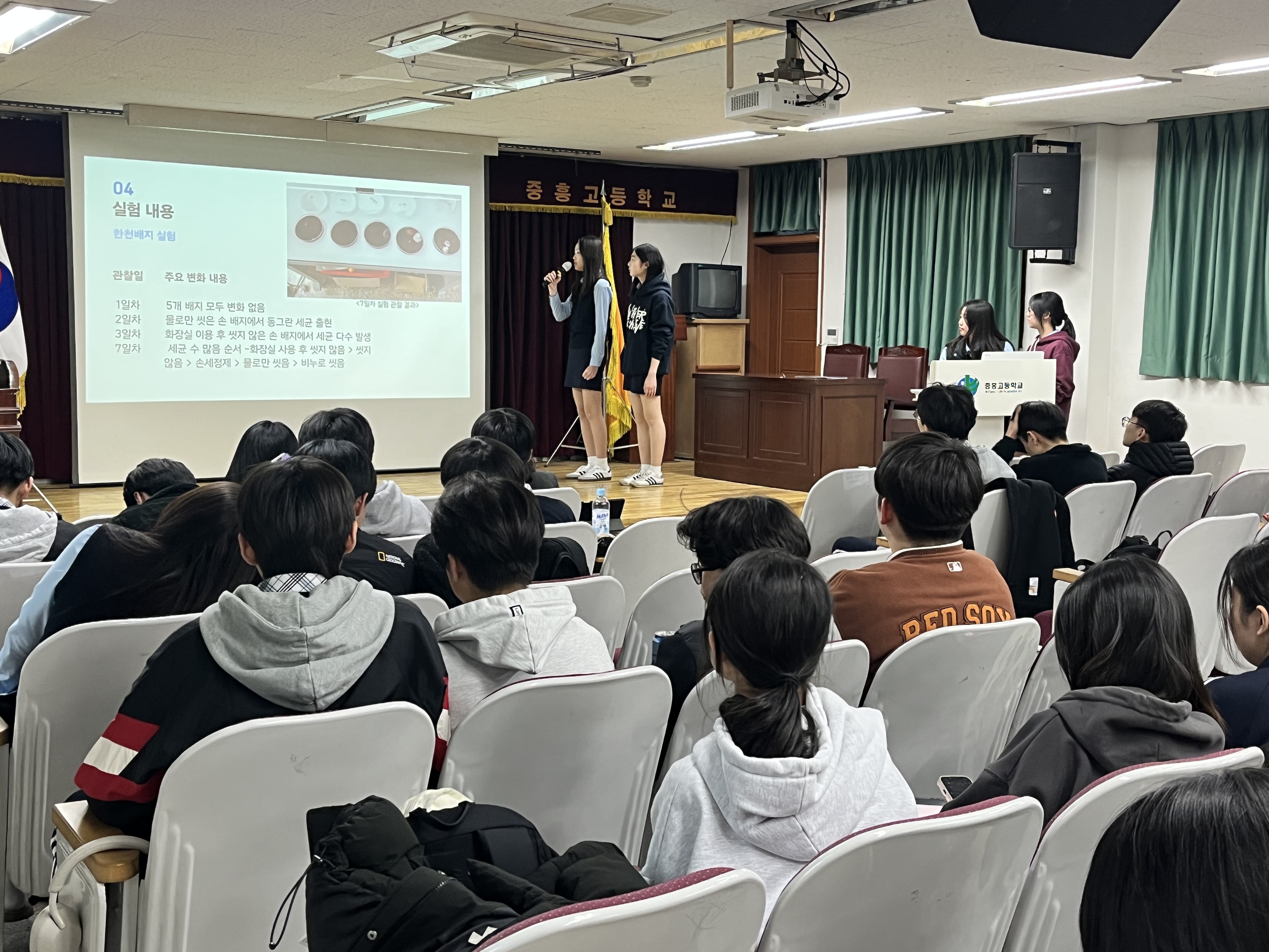 ºÎõ ÁßÈï°íµîÇб³(±³Àå ½Å¿ëö)¿¡¼­´Â ÇлýµéÀÌ 1³â°£ ÁøÇàÇÑ Å½±¸ Ȱµ¿ÀÇ °á°ú¸¦ °øÀ¯ÇÏ´Â ¡®Áø·Îޱ¸ ÇÁ·ÎÁ§Æ® ¹ßǥȸ¡¯°¡ Áö³­ 4ÀÏ ¿­·È´Ù. À̹ø Çà»ç´Â ÇлýµéÀÌ °¢ÀÚÀÇ Áø·Î ºÐ¾ß¿¡ ´ëÇØ ޱ¸ÇÏ°í ¿¬±¸ÇÑ °á°ú¸¦ º¸°í¼­¿Í ¹ßÇ¥·Î ¼±º¸ÀÌ´Â ÀÚ¸®·Î, ÃÑ 18°³ ÆÀÀÌ Âü°¡ÇØ ¿­Á¤°ú âÀÇ·ÂÀ» »Ë³Â´Ù.