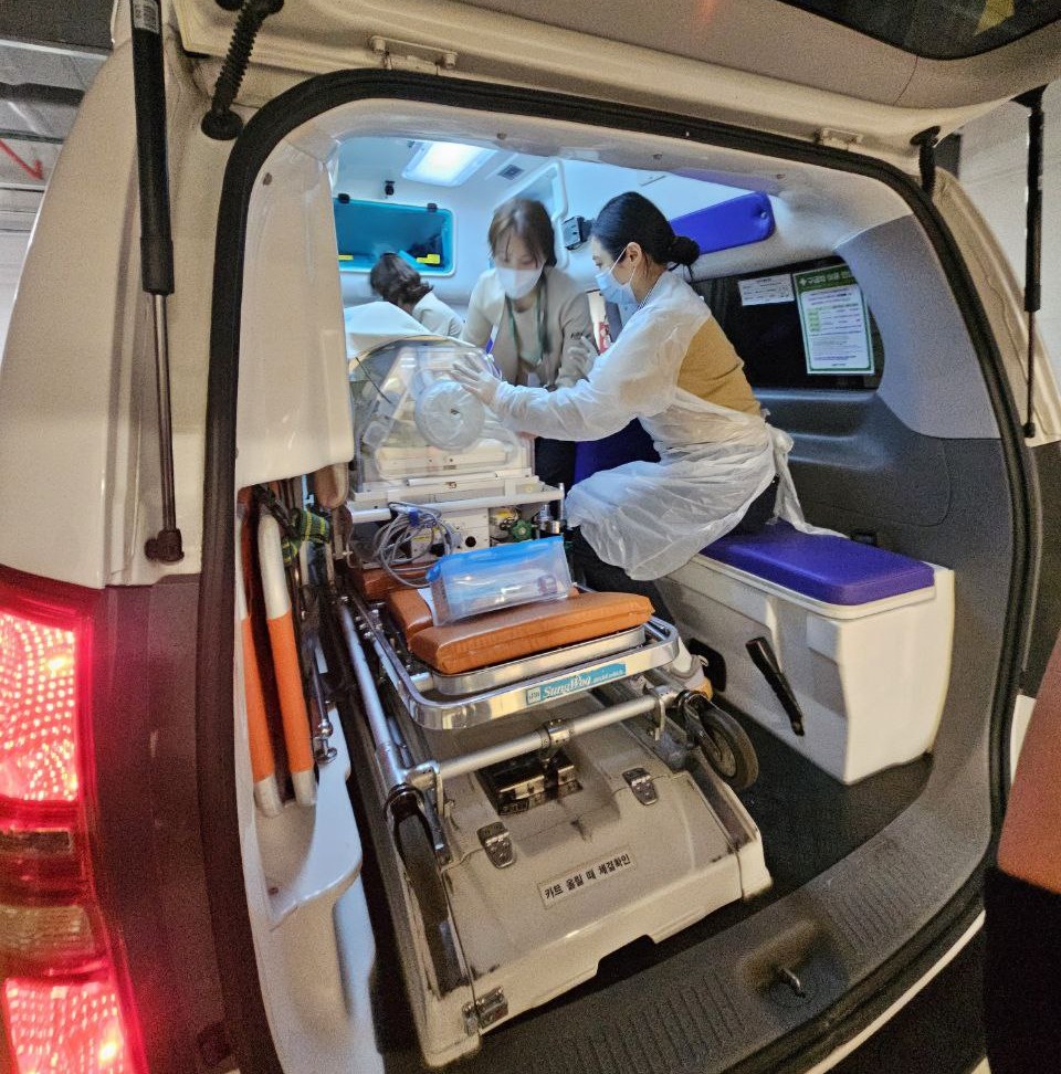 ÀÌ¼Û °úÁ¤¿¡¼µµ ½Å»ý¾ÆÀÇ ¾ÈÁ¤ÀûÀÎ »óÅ À¯Áö¸¦ À§ÇØ ±è °úÀå, ¹Ù½Ç¸®³ª ÄÚµð³×ÀÌÅÍ, ¿©¼ºÀü¹®º´¿ø °£È£»ç°¡ µ¿ÇàÇÏ´Â µî źźÇÑ Áø·á Çù·Â ½Ã½ºÅÛÀÌ ÀÛµ¿Çß´Ù.