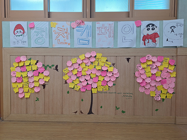 Ä·ÆäÀÎ ±â°£ µ¿¾È ÇлýµéÀº ¡ãĪÂù ³ª¹« º®È ²Ù¹Ì±â ¡ã°¨»ç¿Í ĪÂù ±Û ÀÛ¼ºÇϱ⠡ãĪÂù ½ºÆ¼Ä¿ ºÙÀ̱⠡ã±×¸² Àç´É±âºÎ µî ´Ù¾çÇÑ È°µ¿¿¡ Âü¿©Çϸç ÀڽŰú Ä£±¸, ±³»ç, °¡Á·¿¡°Ô °Ý·Á¿Í Á¸ÁßÀÇ ¸¶À½À» Ç¥ÇöÇÏ¿´´Ù. ±³À°º¹Áö½Ç º®¸éÀº ÇлýµéÀÌ Á÷Á¢ ²Ù¹Î ¡®ÄªÂù ³ª¹«¡¯ º®È·Î °¡µæ ä¿öÁ³À¸¸ç, Á¡½É½Ã°£¸¶´Ù ÇлýµéÀÌ ³²±ä µû¶æÇÑ ¸Þ½ÃÁö·Î Çб³ °ø°£ÀÌ ´õ¿í Æ÷±ÙÇØÁ³´Ù.