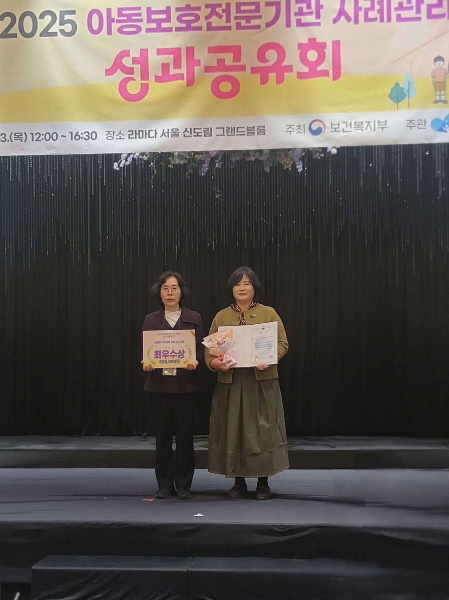 ºÎõ½Ã¾Æµ¿º¸È£Àü¹®±â°ü(°üÀå È«ÇöÁ¤)ÀÌ ¾Æµ¿±Ç¸®º¸Àå¿øÀÌ ÁÖÃÖÇÑ ¡®2025³â ¹æ¹® ¶È¶È! ¸¶À½ ÅåÅå! »ç¾÷ ¿ì¼ö»ç¾÷ ¼öÇà±â°ü °ø¸ðÀü¡¯¿¡¼­ ÃÖ¿ì¼ö»ó(º¸°Çº¹ÁöºÎÀå°ü»ó)À» ¼ö»óÇß´Ù. ½Ã»ó½ÄÀº 11¿ù 13ÀÏ(¼ö) ½Åµµ¸² ¶ó¸¶´Ù È£ÅÚ ±×·£µåº¼·ë¿¡¼­ ¿­·È´Ù.