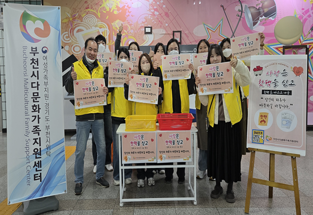ºÎõ½Ã´Ù¹®È­°¡Á·Áö¿ø¼¾ÅÍ(¼¾ÅÍÀå ¿À¿íÁ¦)´Â Áö³­ 11¿ù 12ÀÏ(¼ö) ºÎõ¿ª ÀÏ´ë¿¡¼­ °Ü¿ïöÀ» ¸Â¾Æ ½Ã¹Îµé¿¡°Ô µû¶æÇÑ ¸¶À½À» ÀüÇϰí Áö¿ª»çȸ ³» ³ª´® ¹®È­¸¦ È®»êÇϱâ À§ÇØ ¡®»ç¶ûÀº ÇÖÆÑÀ» ½Æ°í¡¯¸¦ ÁøÇàÇß´Ù.