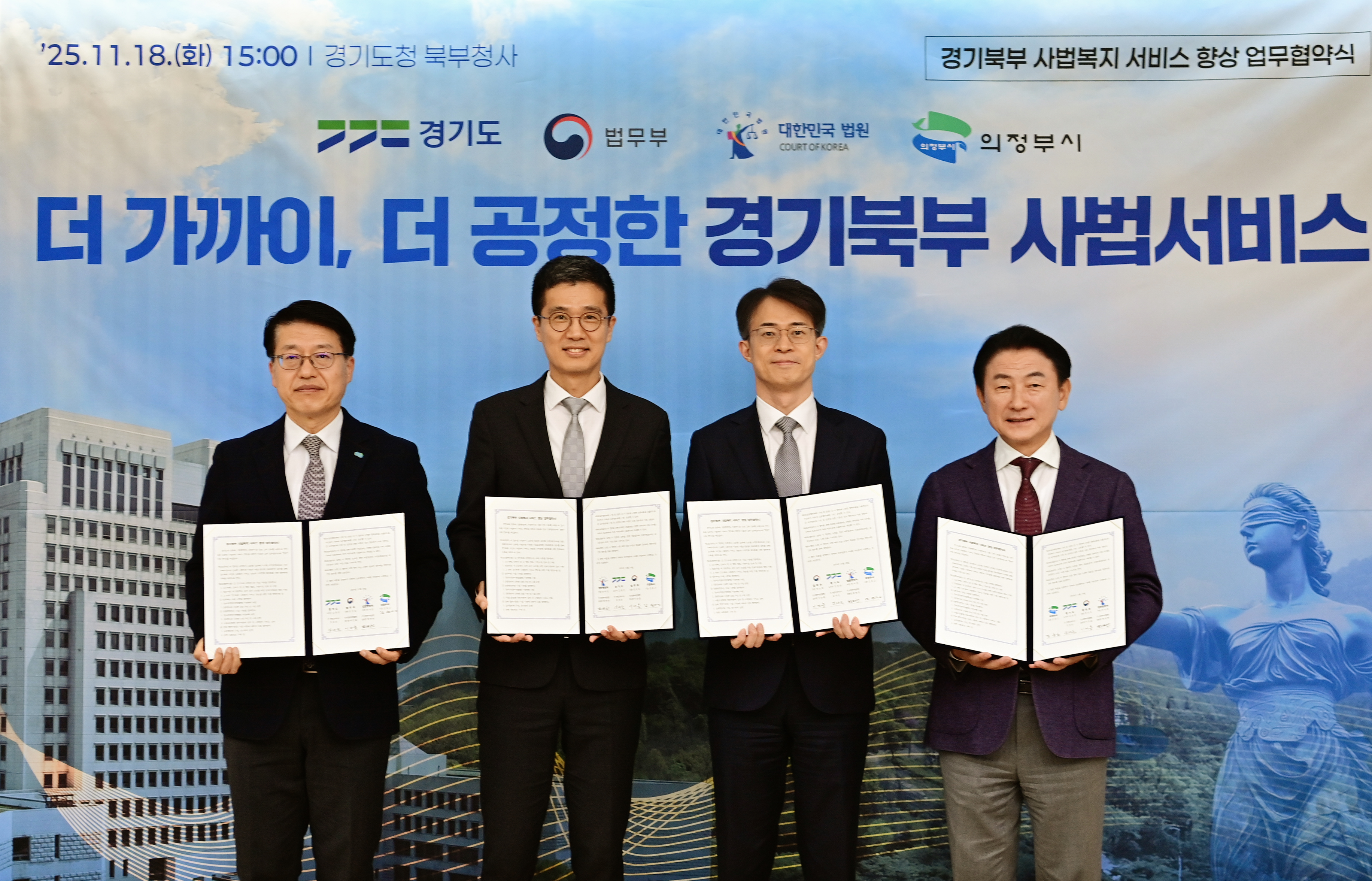±è´ë¼ø °æ±âµµ ÇàÁ¤2ºÎÁö»ç¿Í Ȳº´Çå ÀÇÁ¤ºÎÁö¹æ¹ý¿ø ¹ý¿øÀå, À̸¸Èì ÀÇÁ¤ºÎÁö¹æ°ËÂûû °Ë»çÀå, ±èµ¿±Ù ÀÇÁ¤ºÎ½ÃÀåÀº 18ÀÏ °æ±âµµ ºÏºÎû»ç¿¡¼ ÀÌ·± ³»¿ëÀ» ´ãÀº ¡®°æ±âºÏºÎ »ç¹ýº¹Áö ¼ºñ½º Çâ»ó ¾÷¹«Çù¾à¡¯¿¡ ¼¸íÇß´Ù.