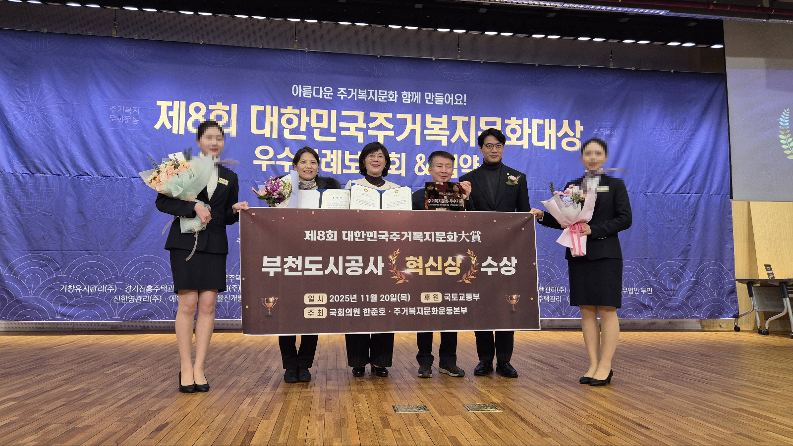 ºÎõµµ½Ã°ø»ç(»çÀå ¿ø¸íÈñ)´Â Áö³ 11¿ù 20ÀÏ ±¹È¸µµ¼°ü ´ë°´ç¿¡¼ °³ÃÖµÈ ¡®Á¦8ȸ ´ëÇѹα¹ Áְź¹Áö¹®È´ë»ó¡¯¿¡¼ ±â°üºÎ¹® ¡®Çõ½Å»ó¡¯À» ¼ö»óÇÏ¿´´Ù°í ¹àÇû´Ù.