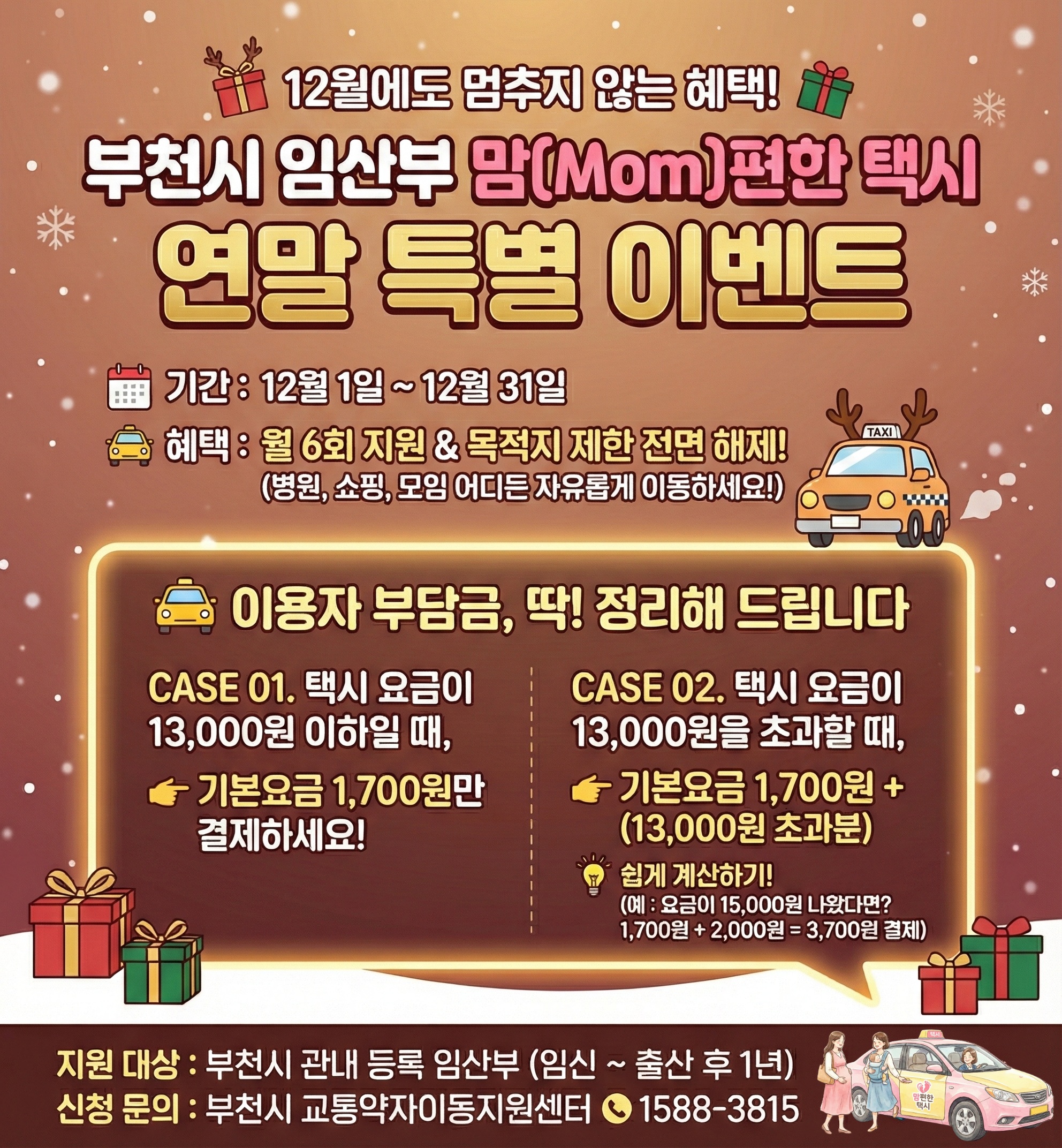 ºÎõ½Ã´Â 12¿ù ÇÑ ´Þ°£ ÀÓ»êºÎ À̵¿ ÆíÀǸ¦ À§ÇÑ ¡®¸¾(Mom)ÆíÇÑ ¿¬¸» Ưº° À̺¥Æ®¡¯¸¦ ¿î¿µÇÑ´Ù. À̹ø Çà»ç´Â Áö³ 10~11¿ù ÁøÇàµÈ 4ºÐ±â À̺¥Æ®¿¡ ´ëÇÑ ½Ã¹ÎµéÀÇ ³ôÀº È£ÀÀÀ» ¹Ý¿µÇØ ¿¬Àå ÃßÁøµÆ´Ù.