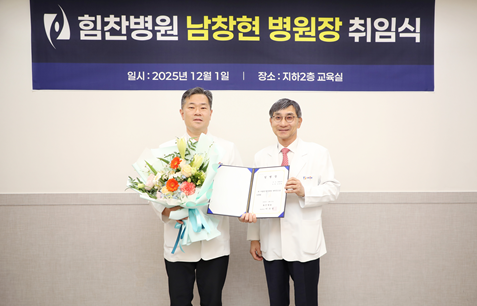 ¸ñµ¿ÈûÂùº´¿ø ½ÅÀÓ º´¿øÀåÀ¸·Î ³²Ã¢Çö Á¤Çü¿Ü°ú Àü¹®ÀÇ(ÀÇÇйڻç)°¡ ÃëÀÓÇß´Ù. 12¿ù 1ÀÏ ¿ÀÈÄ 5½Ã À̼öÂù ´ëÇ¥¿øÀåÀ» ºñ·ÔÇÑ º´¿ø °ü°èÀÚµéÀÌ Âü¼®ÇÑ °¡¿îµ¥ ¸ñµ¿ÈûÂùº´¿ø¿¡¼­ ÃëÀÓ½ÄÀ» ¿­°í ³²Ã¢Çö ½ÅÀÓ º´¿øÀå¿¡°Ô ÀÓ¸íÀåÀ» ¼ö¿©Çß´Ù. °³È¸ ¼±¾ðÀ» ½ÃÀÛÀ¸·Î ³»ºó ¼Ò°³, ÀÓ¸íÀå Àü´Þ, ÃëÀÓ»ç ¹× Ãà»ç, ±â³ä ÃÔ¿µ ¼øÀ¸·Î ÁøÇàµÆ´Ù.