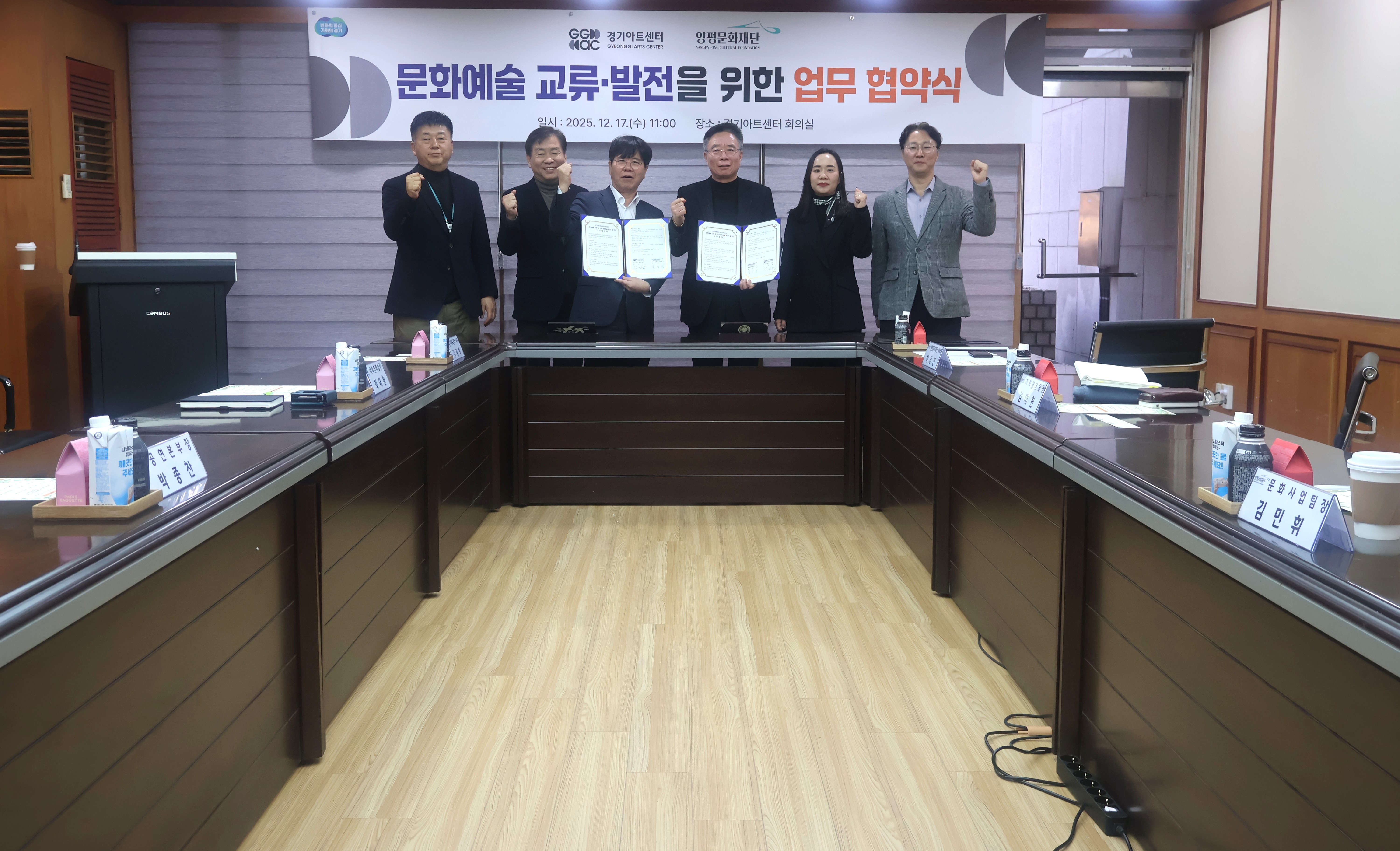 °æ±â¾ÆÆ®¼¾ÅÍ(»çÀå ±è»óȸ)°¡ 12¿ù 17ÀÏ(¼ö) ¾çÆò¹®È­Àç´Ü(ÀÌ»çÀå ¹Ú½Å¼±)°ú ¹®È­¿¹¼ú ±³·ù¿Í Áö¿ª ¹®È­¿¹¼ú ¹ßÀüÀ» À§ÇÑ ¾÷¹«Çù¾àÀ» ü°áÇß´Ù. Çù¾à½Ä¿¡´Â °æ±â¾ÆÆ®¼¾ÅÍ ±è»óȸ »çÀå°ú ¾çÆò¹®È­Àç´Ü ¹Ú½Å¼± ÀÌ»çÀåÀ» ºñ·ÔÇØ ¾ç ±â°ü °ü°èÀÚµéÀÌ Âü¼®Çß´Ù.
