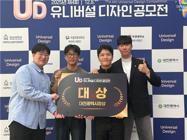 À¯ÇÑ´ëÇб³(ÃÑÀå ÀåÀº¿µ) »ê¾÷µðÀÚÀÎÀü°ø ÇлýµéÀÌ ¡®Á¦4ȸ À¯´Ï¹ö¼³µðÀÚÀÎ °ø¸ðÀü¡¯¿¡¼ Çõ½ÅÀûÀÎ ÈÀç ´ëÀÀ ¾ÈÀü µðÀÚÀÎÀ» ¼±º¸ÀÌ¸ç ´ë»óÀÎ ´ëÀü±¤¿ª½ÃÀå»óÀ» ¼ö»óÇß´Ù°í ¹àÇû´Ù.