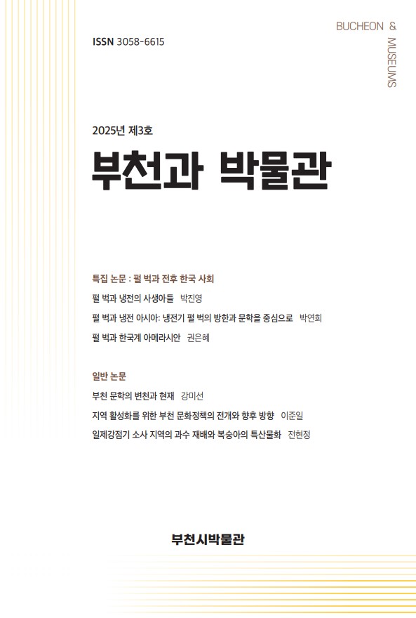 ÀÏ¹Ý ³í¹®À¸·Î´Â ¡ã°¹Ì¼±(°¡Å縯´ëÇб³ ±¹¾î±¹¹®Çаú)ÀÇ ¡®ºÎõ ¹®ÇÐÀÇ º¯Ãµ°ú ÇöÀ硯 ¡ãÀÌÁØÀÏ(ºÎõȰ¹Ú¹°°ü)ÀÇ ¡®Áö¿ª Ȱ¼ºÈ¸¦ À§ÇÑ ºÎõ ¹®ÈÁ¤Ã¥ÀÇ Àü°³¿Í ÇâÈÄ ¹æÇ⡯ ¡ãÀüÇöÁ¤(ºÎõ½Ã¸³¹Ú¹°°ü)ÀÇ ¡®ÀÏÁ¦°Á¡±â ¼Ò»ç Áö¿ªÀÇ °ú¼ö Àç¹è¿Í º¹¼þ¾ÆÀÇ Æ¯»ê¹°È¡¯°¡ °ÔÀçµÆ´Ù. ¼¼ ³í¹®Àº ºÎõÀÇ ¹®Çлç, ¹®ÈÁ¤Ã¥, Áö¿ª Ư»ê¹°¿¡ ´ëÇÑ ¿¬±¸¸¦ ÅëÇØ µµ½ÃÀÇ ¿ª»ç¿Í Á¤Ã¼¼º¿¡ ´ëÇÑ ÀÌÇØ¸¦ ½ÉÈÇß´Ù.