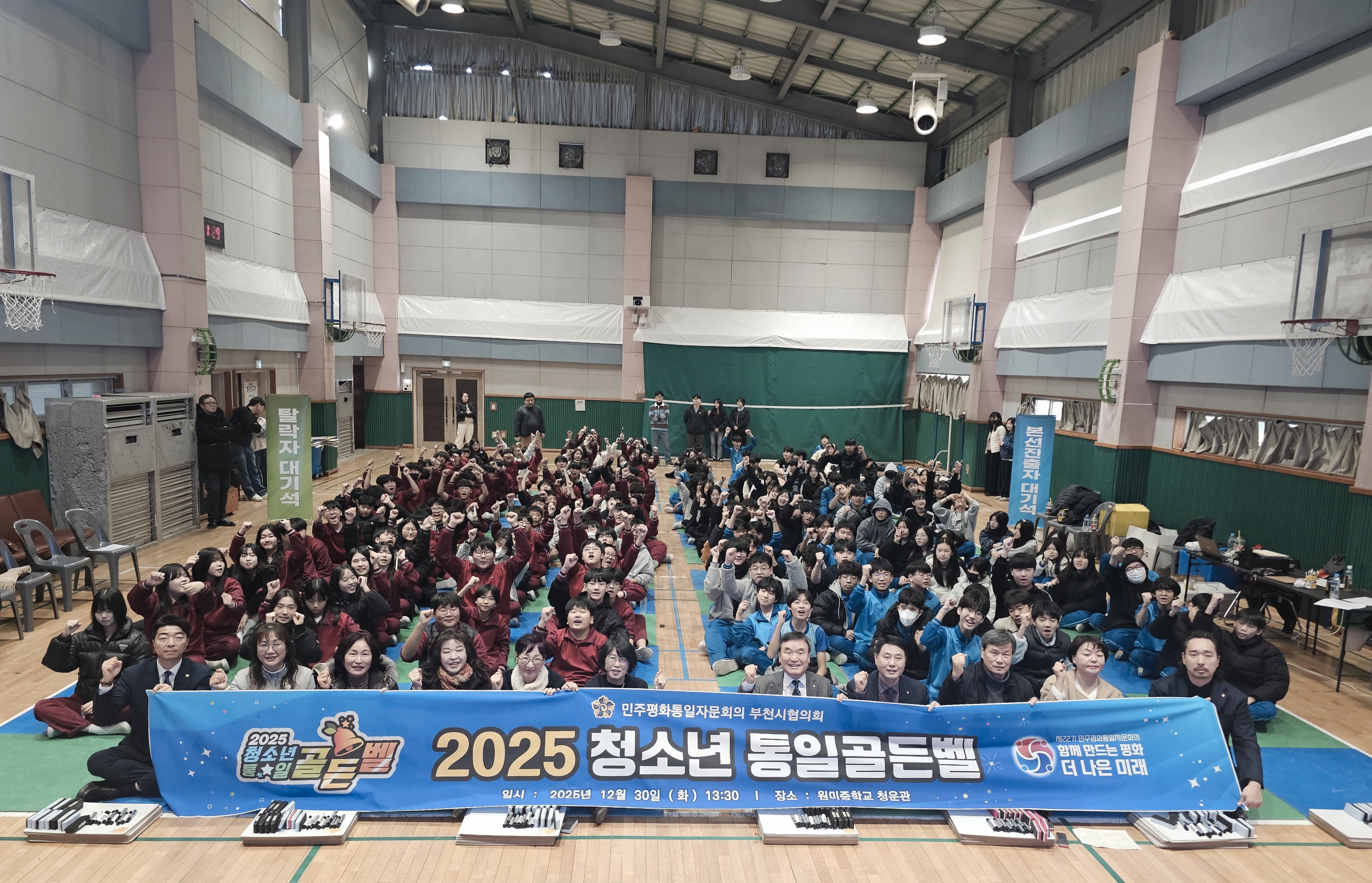 ¹ÎÁÖÆòÈ­ÅëÀÏÀÚ¹®È¸ÀÇ ºÎõ½ÃÇùÀÇȸ(ȸÀå ½É¹æ½Ä)´Â 12¿ù 30ÀÏ(È­) 13½Ã 30ºÐ, ¿ø¹ÌÁßÇб³ û¿î°ü¿¡¼­ 1~2Çгâ Àüü Çлý 216¸íÀ» ´ë»óÀ¸·Î ¡°2025 û¼Ò³â ÅëÀϰñµçº§¡±À» °³ÃÖÇß´Ù.