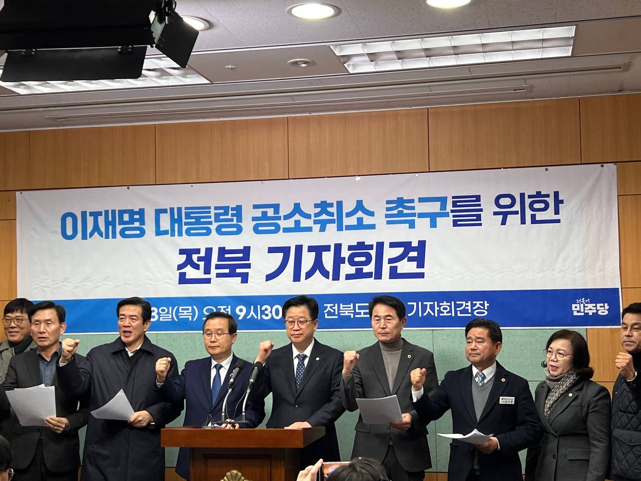 ÇÑÆí ±âÀÚȸ°ßÀå¿¡´Â ÀÌÀç¸í ´ëÅë·ÉÀ» ÁöÁöÇÏ´Â ÀüºÏµµ¹ÎµéÀÌ ¸ð¿© ÀÌÀç¸í ´ëÅë·É »ç°Ç °ø¼ÒÃë¼Ò¸¦ Ã˱¸ÇÏ´Â ÀüºÏÁö¿ª ±¹È¸ÀÇ¿øµé¿¡°Ô ÈûÀ» ½Ç¾î ÁÖ¾ú´Ù.