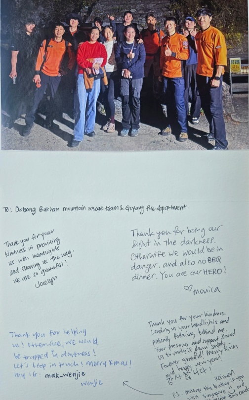 À̵éÀº ½Ì°¡Æ÷¸£ ±Í±¹ ÈÄ Çѱ¹ ±¸Á¶´ë¿¡ °¨µ¿Çß´Ù¸ç ÆíÁö¸¦ º¸³Â´Ù. 4¸íÀÌ °¢ÀÚ ¸Þ¸ð Çü½ÄÀ¸·Î ¾´ ÆíÁö¿¡´Â ¡°À§ÇèÇÑ ¼ø°£¿¡ µµ¿òÀ» Á༠°¨»çÇÏ´Ù¡±, ¡°Çѱ¹¿¡¼ ¹ÞÀº ¹è·Á¸¦ Æò»ý ÀØÁö ¾Ê°Ú´Ù¡±¸ç ±¸Á¶´ë¿øÀ» ¡®¿µ¿õ¡¯(You are our HERO!)À̶ó Ç¥ÇöÇß´Ù. ¼Å÷ ±Û¾¾·Î ¡°°¨»çÇÕ´Ï´Ù!¡±¶ó´Â ÇÑ±Û ¸Þ½ÃÁöµµ ³²°å´Ù.