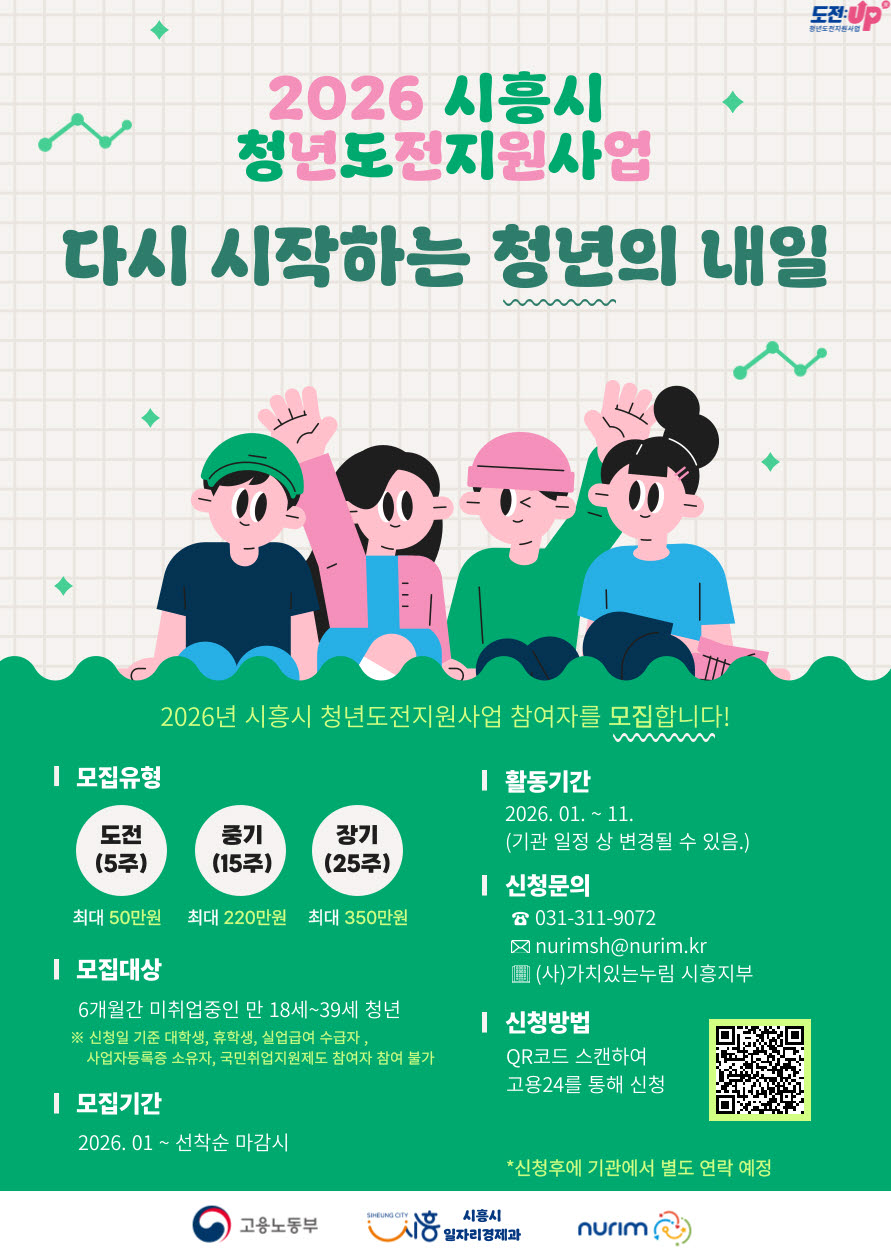½ÃÈï½Ã´Â Ãë¾÷°ú »çȸ ÁøÃâ¿¡ ¾î·Á¿òÀ» °Þ°í Àִ û³âµéÀÇ ÀçµµÀüÀ» Áö¿øÇϱâ À§ÇØ ¡®2026³â û³âµµÀüÁö¿ø»ç¾÷¡¯ Âü¿©ÀÚ 156¸íÀ» ¸ðÁýÇÑ´Ù.