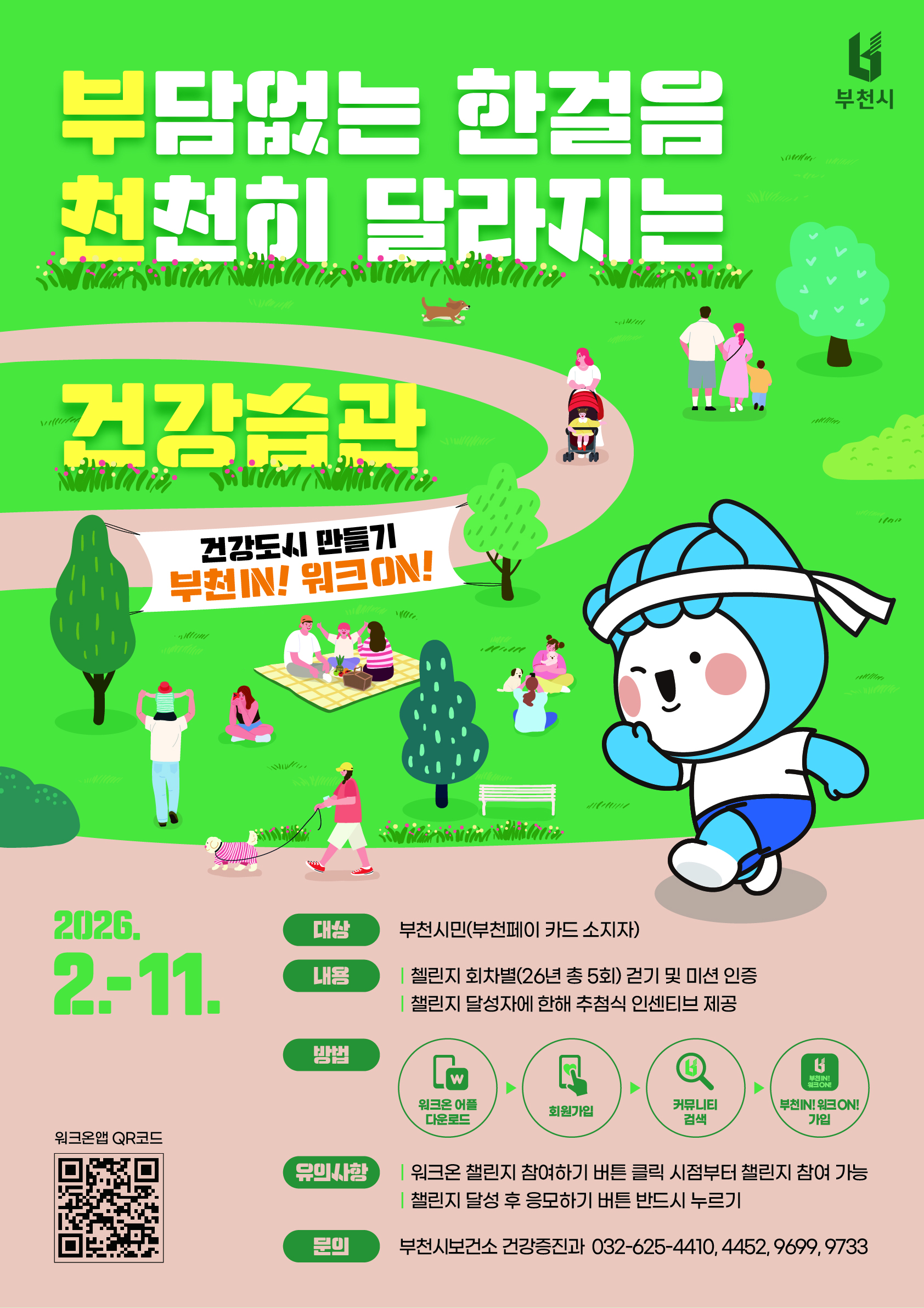 ¼ÛÁ¤¿ø ºÎõ½Ãº¸°Ç¼ÒÀåÀº ¡°½Ã¹ÎµéÀÌ ÀÏ»ó ¼Ó¿¡¼ °Ç°ÇÑ ½À°üÀ» ½ÇõÇÒ ¼ö ÀÖµµ·Ï µ½±â À§ÇÑ »ç¾÷¡±À̶ó¸ç ¡°¿öÅ©¿Â °È±â 縰Áö¸¦ ÅëÇØ ½Ã¹Î °Ç° ¼öÁØÀ» ³ôÀ̰í, °Ç°µµ½Ã ºÎõÀÇ ±â¹ÝÀ» ´õ¿í ´Ü´ÜÈ÷ ´ÙÁ®°¡°Ú´Ù¡±°í ¸»Çß´Ù.