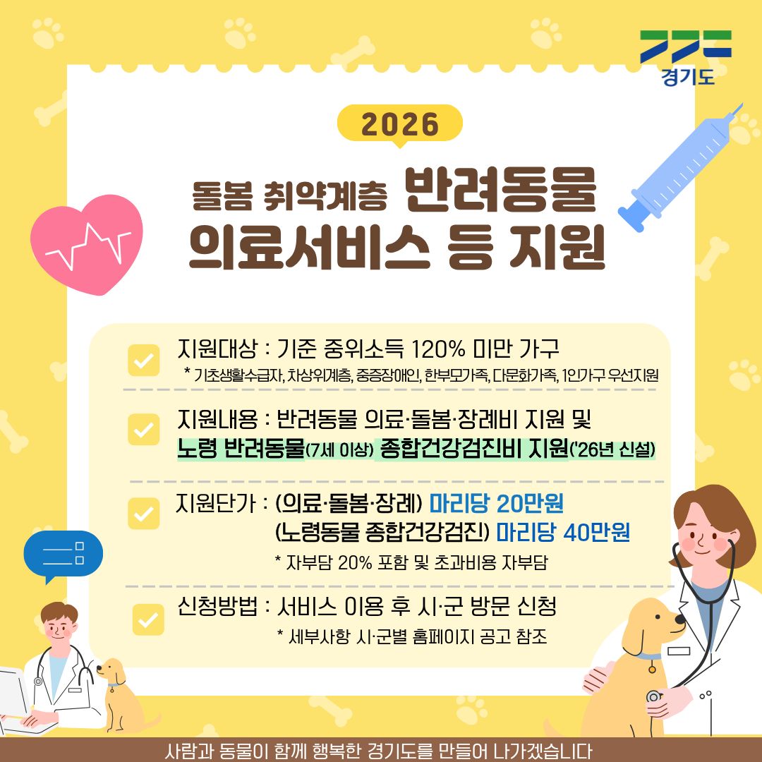 ¡®µ¹º½ Ãë¾à°¡±¸ ¹Ý·Áµ¿¹° ÀǷἺñ½º µî Áö¿ø»ç¾÷¡¯Àº »çȸÀû ¹è·Á°èÃþÀÇ ¹Ý·Áµ¿¹°À» ´ë»óÀ¸·Î ÀǷᡤµ¹º½¡¤Àå·Êºñ¸¦ Áö¿øÇÏ´Â »ç¾÷À¸·Î ¿ÃÇØºÎÅÍ ³ë·Éµ¿¹° Á¾Çհǰ°ËÁø Áö¿øÀÌ ½Å¼³µÆ´Ù.