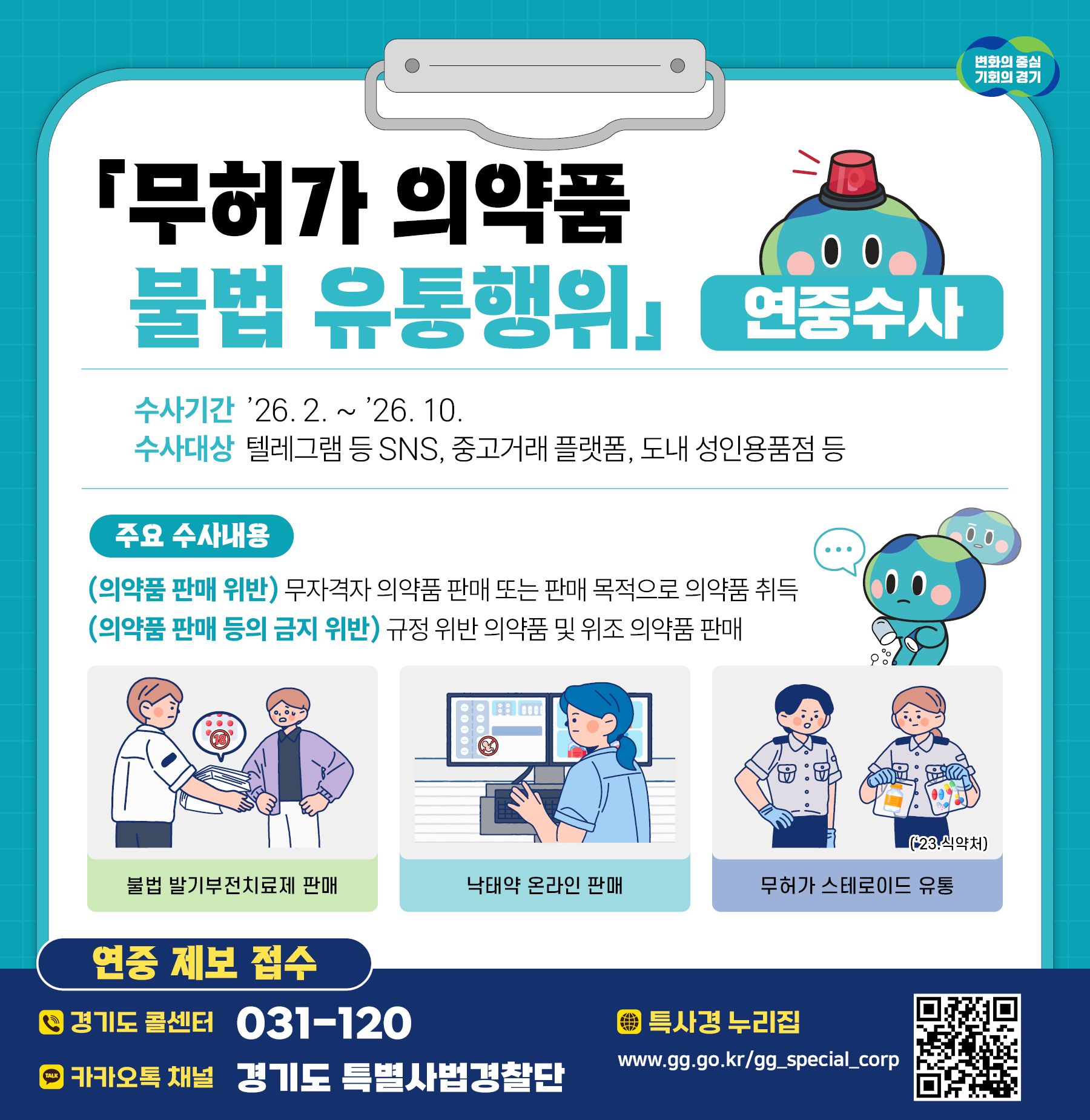 °æ±âµµ Ưº°»ç¹ý°æÂû´Ü(Ư»ç°æ)ÀÌ ºñ´ë¸é À¯Åë¸Á È®»êÀ» ƴŸ ±ÞÁõÇϰí ÀÖ´Â ¹«Çã°¡ Àü¹®ÀǾàǰ ºÒ¹ý À¯Åë ±ÙÀýÀ» À§ÇÑ ÁýÁß ¼ö»ç¿¡ ³ª¼±´Ù.