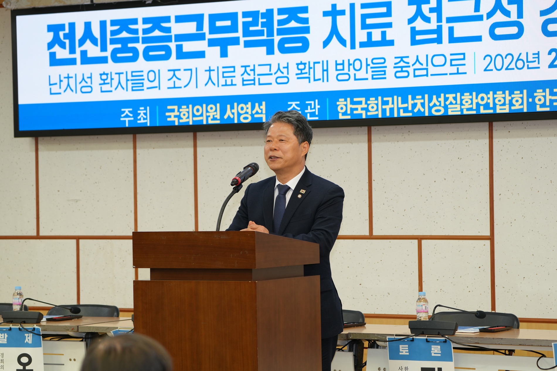 ¼¿µ¼® ´õºÒ¾î¹ÎÁÖ´ç ÀÇ¿ø(°æ±â ºÎõ½Ã°©, ±¹È¸ º¸°Çº¹ÁöÀ§¿øÈ¸)ÀÌ ÁÖÃÖÇϰí Çѱ¹Èñ±Í¡¤³Ä¡¼ºÁúȯ¿¬ÇÕȸ¿Í Çѱ¹ÁßÁõ±Ù¹«·ÂÁõȯ¿ìȸ°¡ ÁÖ°üÇÑ ¡ºÀü½ÅÁßÁõ±Ù¹«·ÂÁõ(MG) Ä¡·á Á¢±Ù¼º °È¸¦ À§ÇÑ Á¤Ã¥ Åä·Ðȸ¡»°¡ 24ÀÏ(È) ¿ÀÀü 10½Ã ±¹È¸ÀÇ¿øÈ¸°ü Á¦3¼¼¹Ì³ª½Ç¿¡¼ ¿·È´Ù.