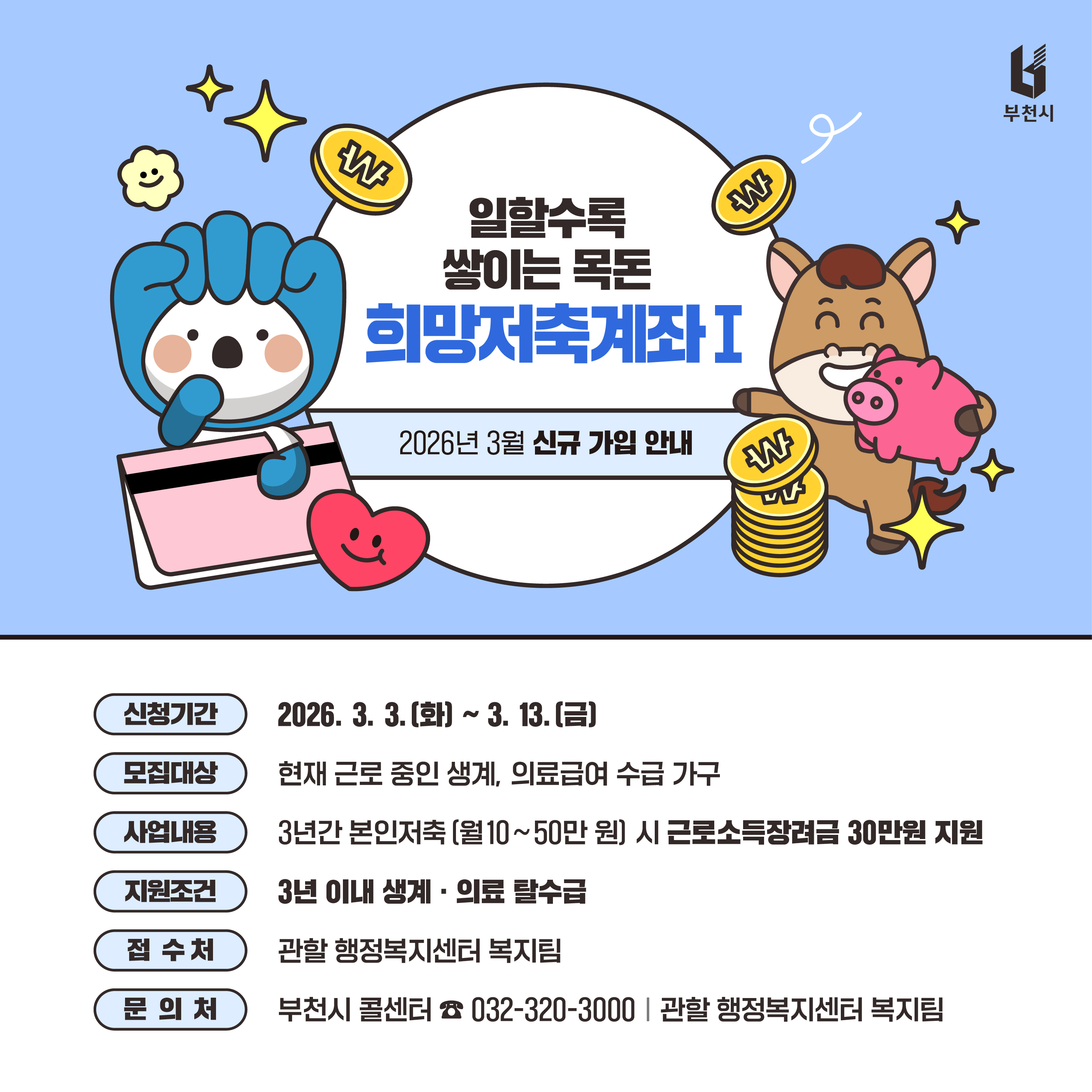 ºÎõ½Ã´Â ±Ù·Î ÁßÀÎ »ý°è¡¤ÀÇ·á±Þ¿© ¼ö±Þ °¡±¸ÀÇ ÀÚ»ê Çü¼º°ú ÀÚ¸³À» Áö¿øÇϱâ À§ÇØ ¡®2026³â Èñ¸ÁÀúÃà°èÁÂ(¥°)¡¯ ½Å±Ô °¡ÀÔÀÚ¸¦ 3¿ù 3ÀϺÎÅÍ 3¿ù 13ÀϱîÁö ¸ðÁýÇÑ´Ù.