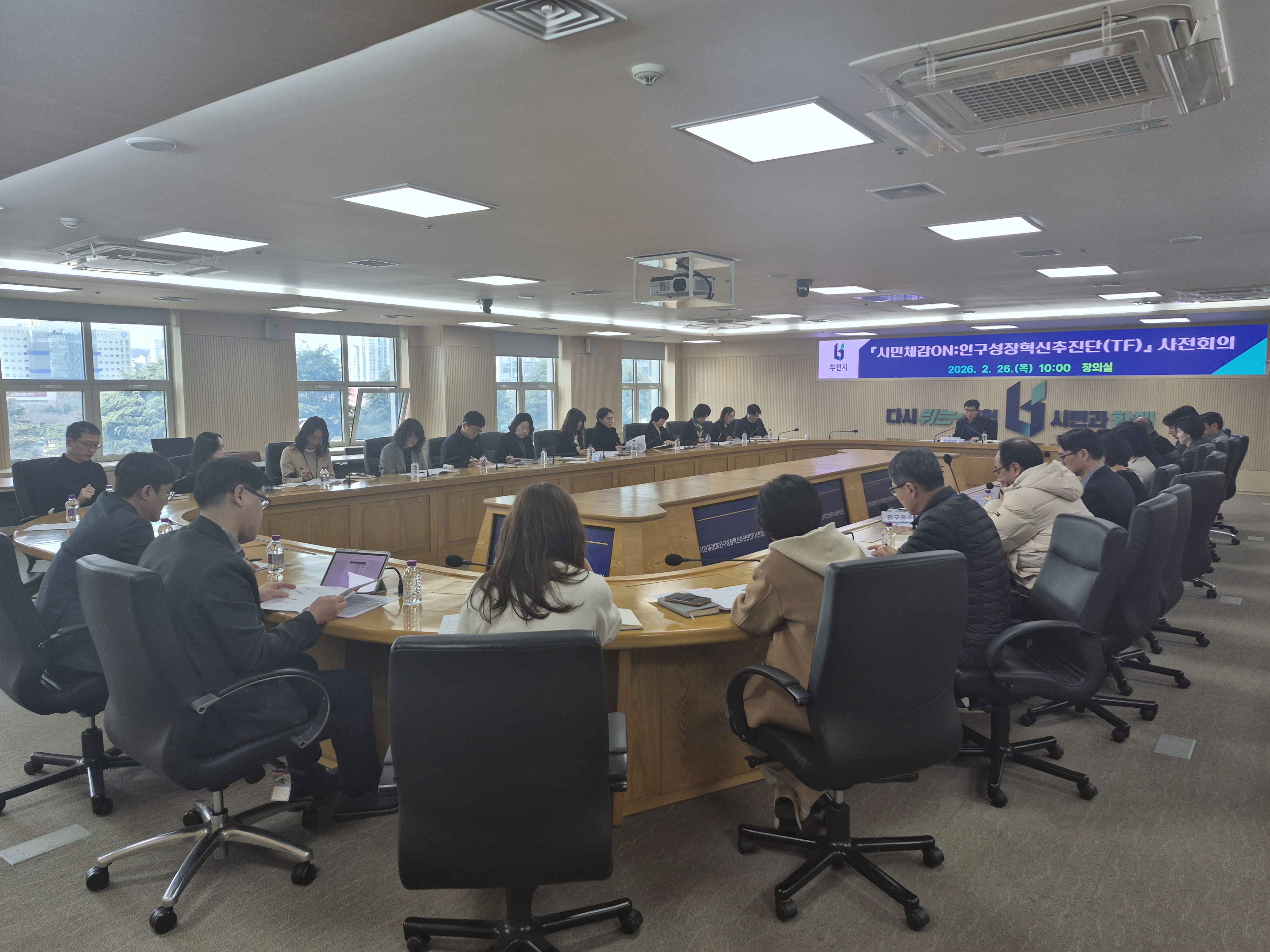 ºÎõ½Ã´Â Áö³­ 26ÀÏ ½Ãû âÀǽǿ¡¼­ ¡®½Ã¹Îü°¨ ON Àα¸¼ºÀå Çõ½ÅÃßÁø´Ü¡¯ »çÀüȸÀǸ¦ ¿­°í º»°ÝÀûÀÎ ¿î¿µ Áغñ¿¡ µé¾î°¬´Ù. À̹ø ȸÀÇ´Â ÃßÁø´Ü ¿î¿µ ÃëÁö¿Í Àü·« ¹æÇâÀ» °øÀ¯Çϰí, ºÐ°úº° ¿ªÇÒ°ú ÇÙ½É °úÁ¦¸¦ Á¡°ËÇϱâ À§ÇØ ¸¶·ÃµÆ´Ù.
