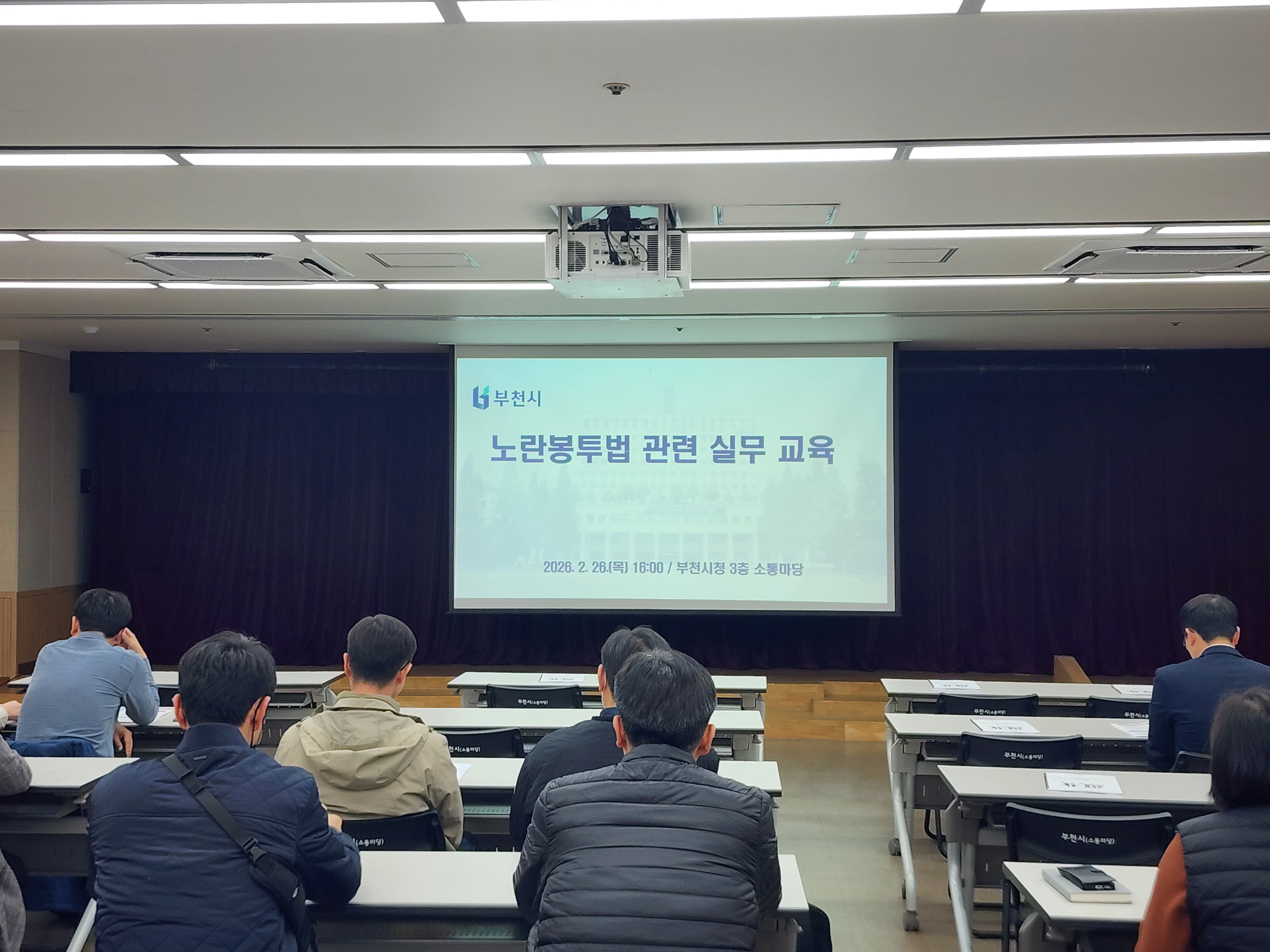 ºÎõ½Ã´Â Áö³­ 26ÀÏ ½Ãû ¼ÒÅ븶´ç¿¡¼­ °è¾à ´ã´çÀÚ¿Í ¹Î°£À§Å¹ ±â°ü ´ã´çÀÚ µî 40¿© ¸íÀ» ´ë»óÀ¸·Î ¡®³ë¶õºÀÅõ¹ý¡¯À¸·Î ºÒ¸®´Â °³Á¤ ³ëµ¿Á¶ÇÕ¹ý ½Ç¹« ±³À°À» ½Ç½ÃÇß´Ù.
