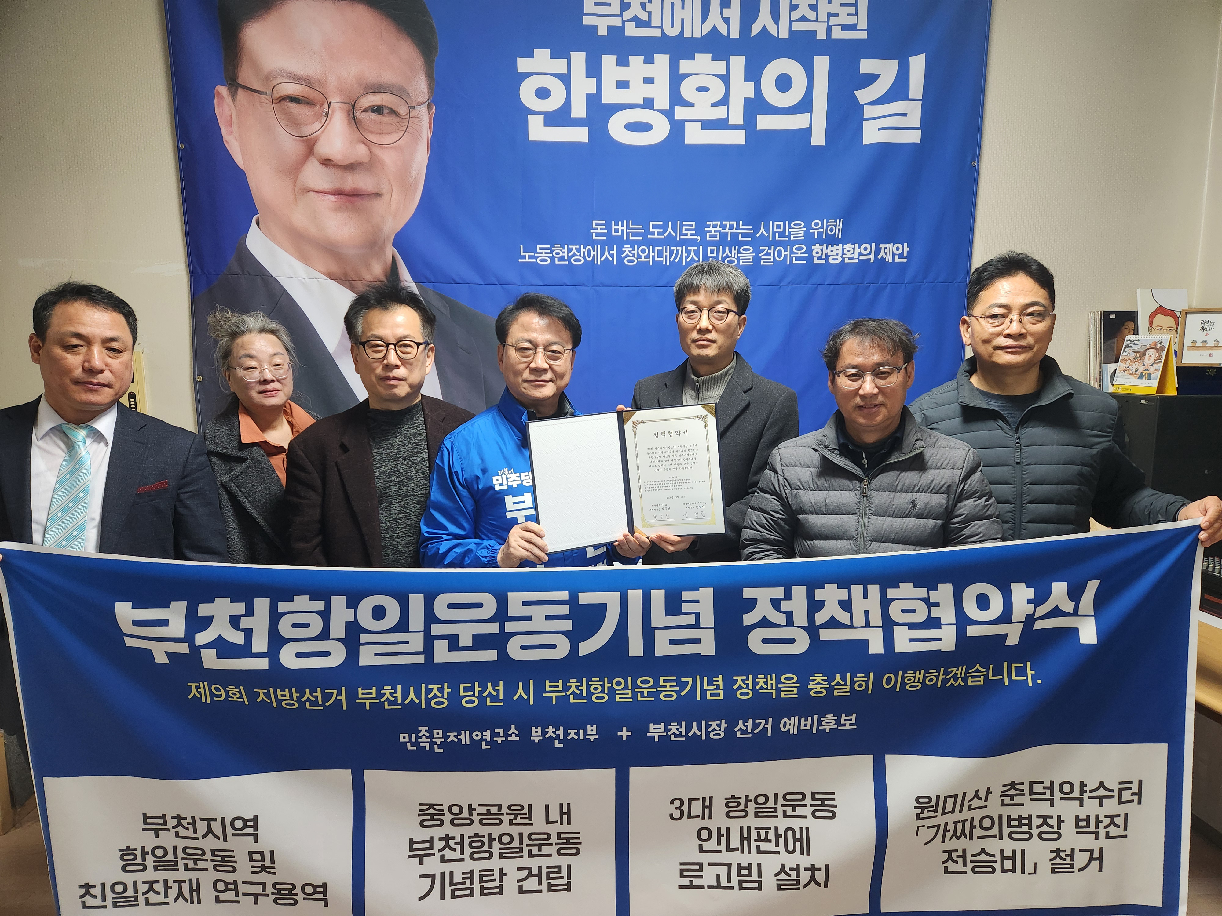 ÇÑ ¿¹ºñÈ帴 2¿ù 28ÀÏ ¹ÎÁ·¹®Á¦¿¬±¸¼Ò ºÎõÁöºÎ¿Í ÇöÀå °£´ãȸ¿Í Á¤Ã¥Çù¾à½Ä¸¦ ÅëÇØ ºÎõ½ÃÀå¿¡ ´ç¼±µÉ °æ¿ì Áö¿ª Ç×ÀϿÀÇ ¿ª»çÀû Àǹ̸¦ ½Ã¹Îµé¿¡°Ô ¾Ë¸®°í °ü·Ã ±â³ä»ç¾÷À» ÃßÁøÇϱâ·Î ¾à¼ÓÇß´Ù.
