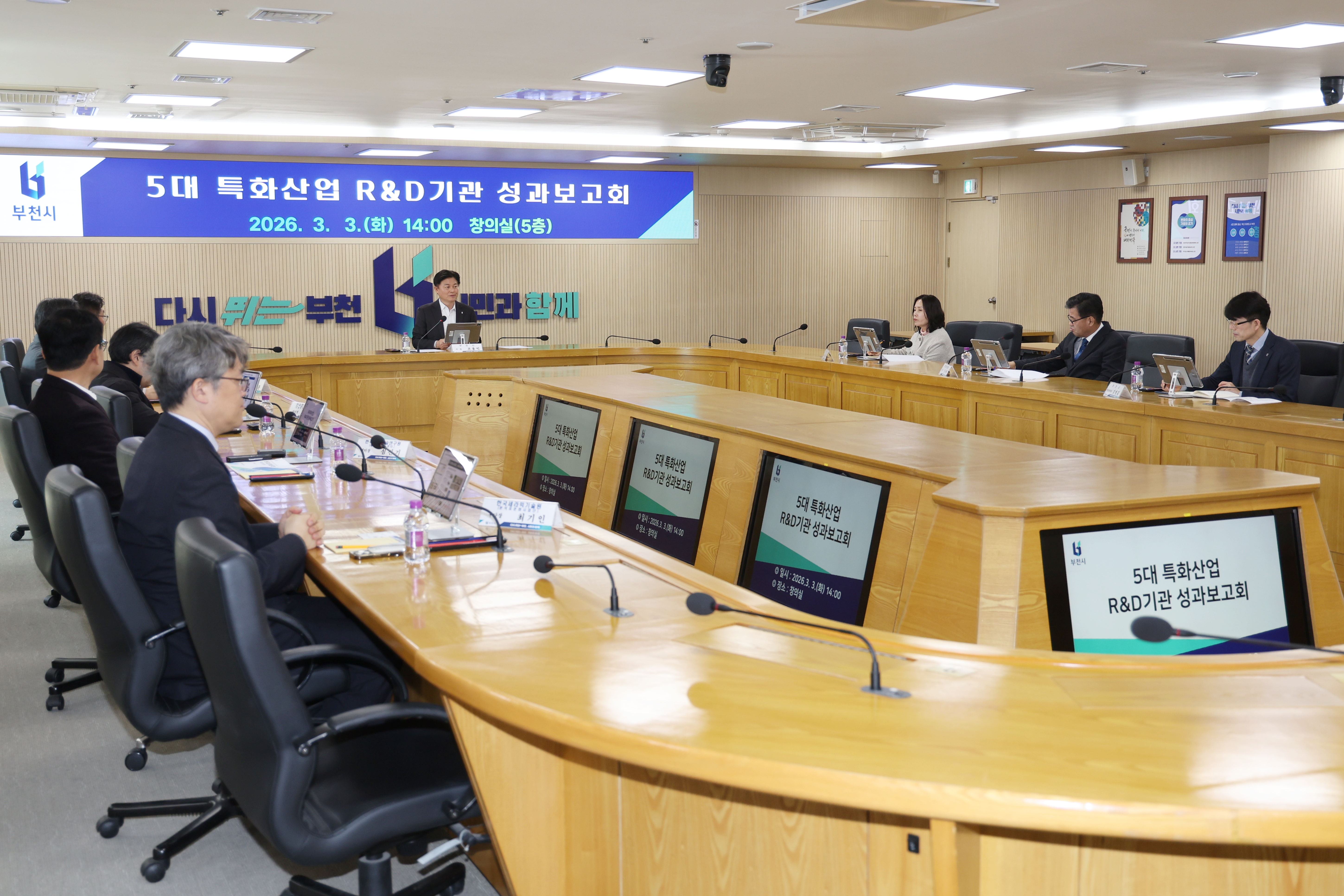 ºÎõ½Ã´Â Áö³ 3ÀÏ ½Ãû âÀǽǿ¡¼ ±ÝÇü¡¤Á¶¸í¡¤·Îº¿¡¤ÆÐŰ¡¡¤¼¼¶ó¹Í µî 5´ë ƯȻê¾÷ ºÐ¾ß ¿¬±¸°³¹ß(R&D) ±â°ü ´ëÇ¥µé°ú ÇÔ²² ¡®2026³â 5´ë ƯȻê¾÷ R&D±â°ü ¼º°úº¸°íȸ¡¯¸¦ ¿¾ú´Ù.
