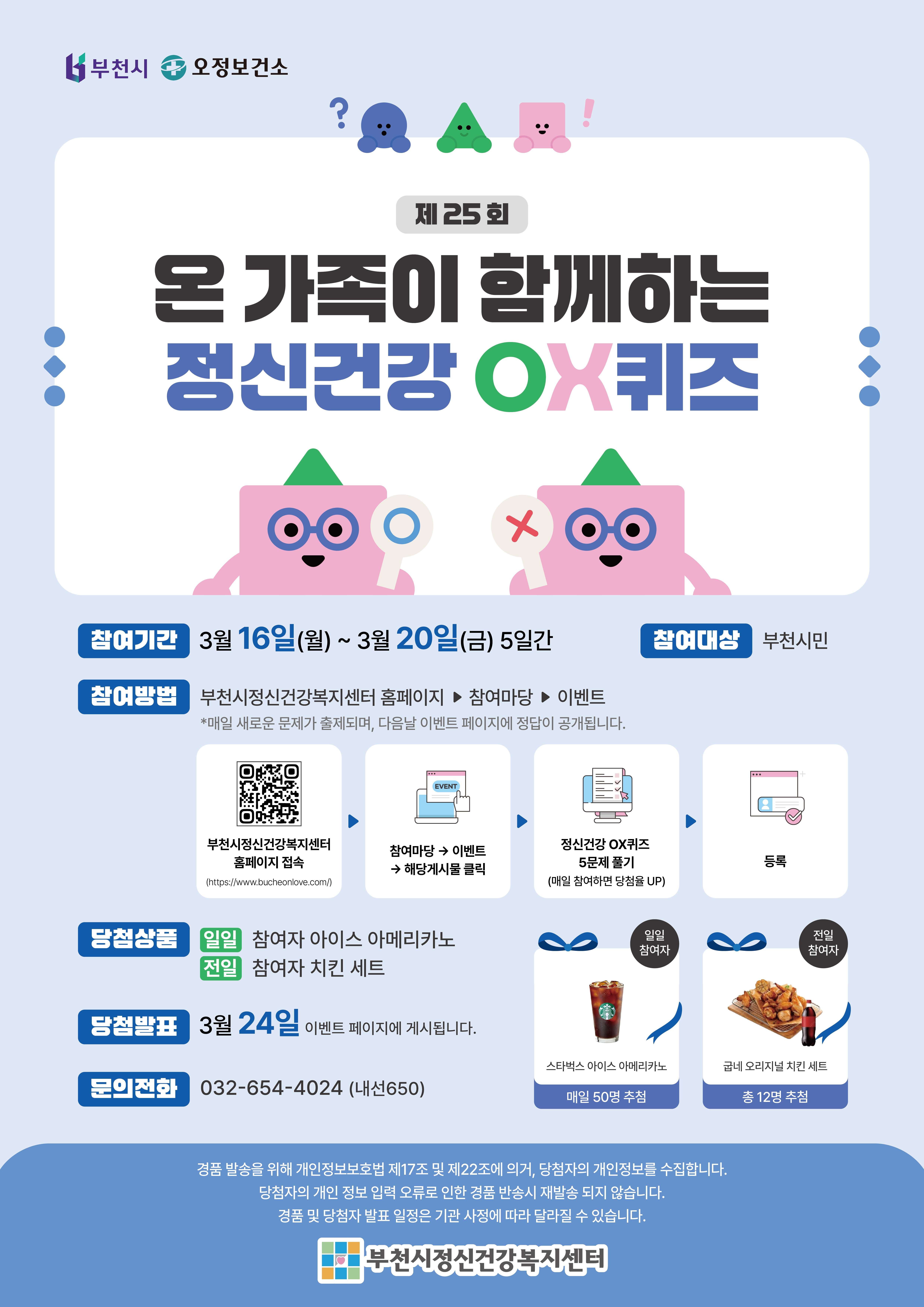ºÎõ½Ã´Â ºÎõ½ÃÁ¤½Å°Ç°­º¹Áö¼¾ÅÍ¿Í ÇÔ²² 3¿ù 16ÀϺÎÅÍ 3¿ù 20ÀϱîÁö ¡®Á¦25ȸ ¿Â °¡Á·ÀÌ ÇÔ²²ÇÏ´Â Á¤½Å°Ç°­ OXÄûÁ¸¦ ÁøÇàÇÑ´Ù.