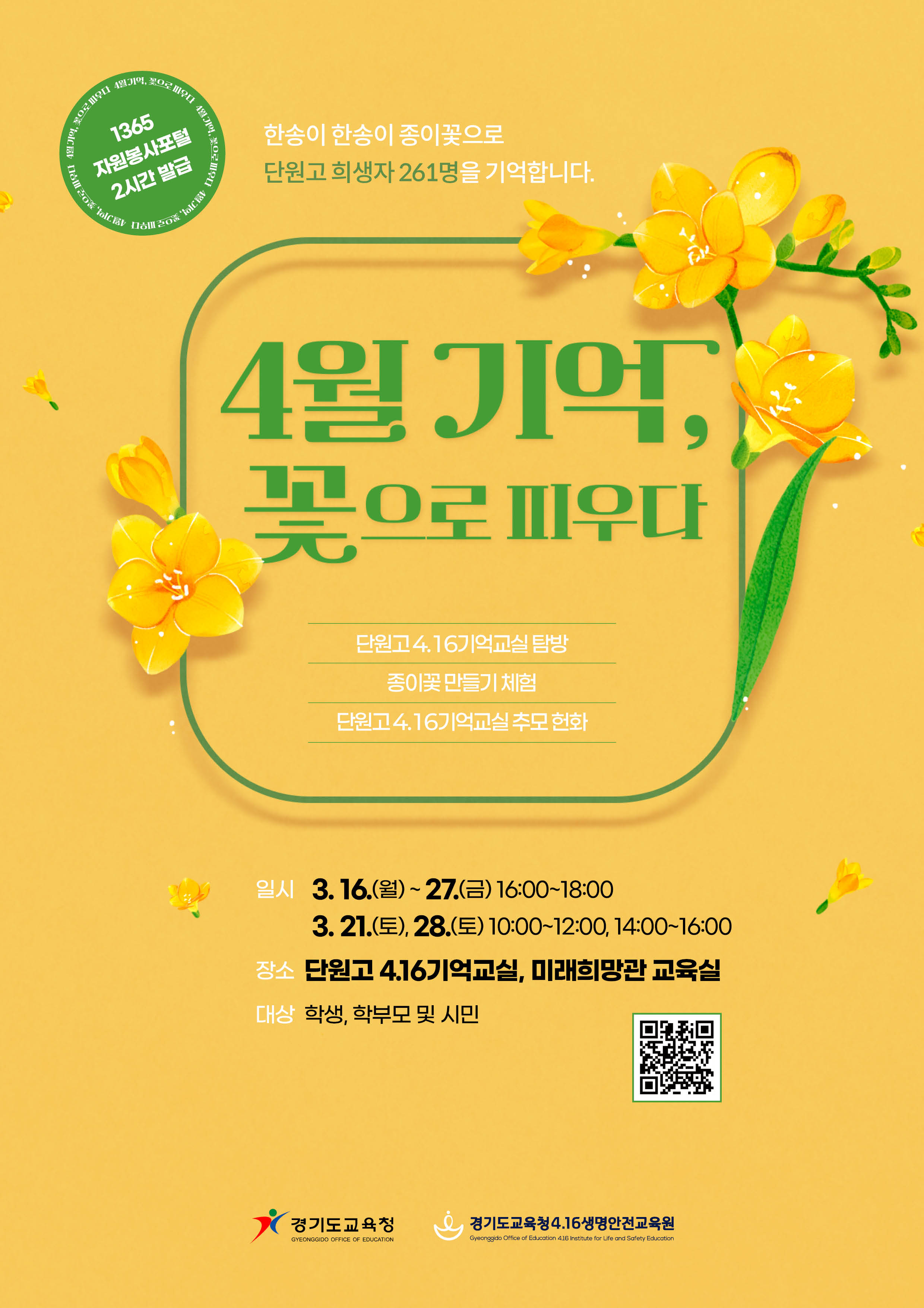 °æ±âµµ±³À°Ã»4.16»ý¸í¾ÈÀü±³À°¿ø, ¡®4¿ù ±â¾ï, ²ÉÀ¸·Î ÇÇ¿ì´Ù¡¯ Âü°¡ÀÚ ¸ðÁý