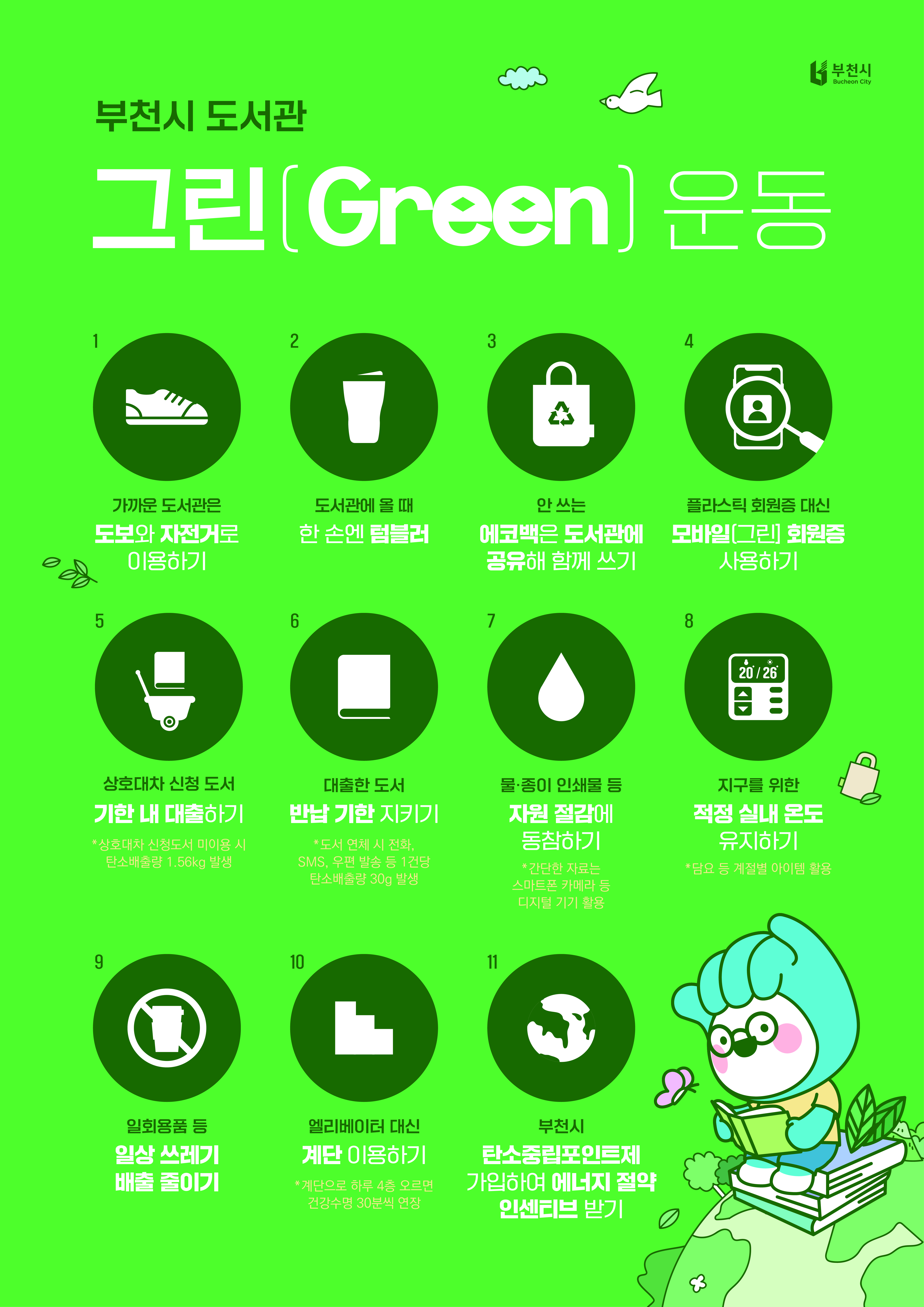 ±×¸° ½Çõ ¸ñ·Ï¿¡´Â °¡±î¿î µµ¼°üÀ» µµº¸³ª ÀÚÀü°Å·Î ÀÌ¿ëÇϱâ, µµ¼°ü ¹æ¹® ½Ã ÅÒºí·¯ »ç¿ëÇϱâ, »ç¿ëÇÏÁö ¾Ê´Â ¿¡ÄÚ¹éÀ» µµ¼°ü¿¡ ±âÁõÇϱ⠵î Àϻ󿡼 ½±°Ô ½ÇõÇÒ ¼ö Àִ ģȯ°æ Ȱµ¿ÀÌ Æ÷ÇԵȴÙ.