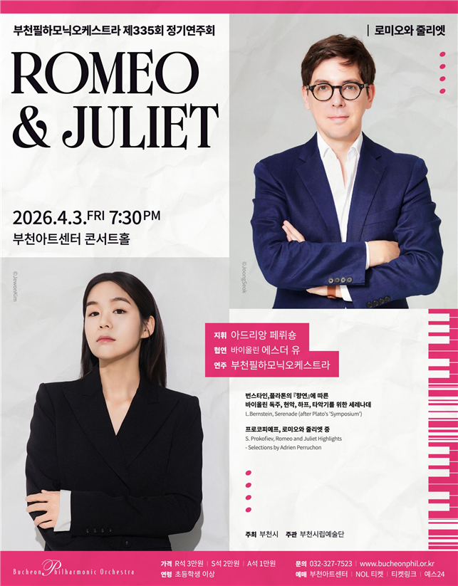 ºÎõÇÊ »óÀÓÁöÈÖÀÚ ¾Æµå¸®¾Ó Æä·ò¼õ(Adrien Perruchon)ÀÇ ÁöÈÖ¿Í ¹ÙÀ̿ø®´Ï½ºÆ® ¿¡½º´õ À¯(Esther Yoo)ÀÇ Çù¿¬À¸·Î ÁøÇàµÇ´Â À̹ø °ø¿¬Àº ¹ø½ºÅ¸ÀÎ ¡´¼¼·¹³ªµ¥¡µ¿Í ÇÁ·ÎÄÚÇÇ¿¹ÇÁ ¡´·Î¹Ì¿À¿Í ÁÙ¸®¿§¡µ ¹ßÃé°îÀ» ÅëÇØ ¡®»ç¶û¡¯À̶ó´Â º¸ÆíÀû ÁÖÁ¦¸¦ ¼·Î ´Ù¸¥ À½¾Ç ¾ð¾î·Î Á¶¸íÇÑ´Ù. öÇÐÀû »çÀ¯¿Í ºñ±ØÀû °ÝÁ¤ÀÌ ±³Â÷ÇÏ´Â À̹ø ¹«´ë´Â µÎ ÀÛ°î°¡°¡ ±×·Á³½ »ç¶ûÀÇ ´Ù¾çÇÑ ¸é¸ð¸¦ ÇÑ ÀÚ¸®¿¡¼ ¸¸³ª´Â ½Ã°£ÀÌ µÉ ¿¹Á¤ÀÌ´Ù.
