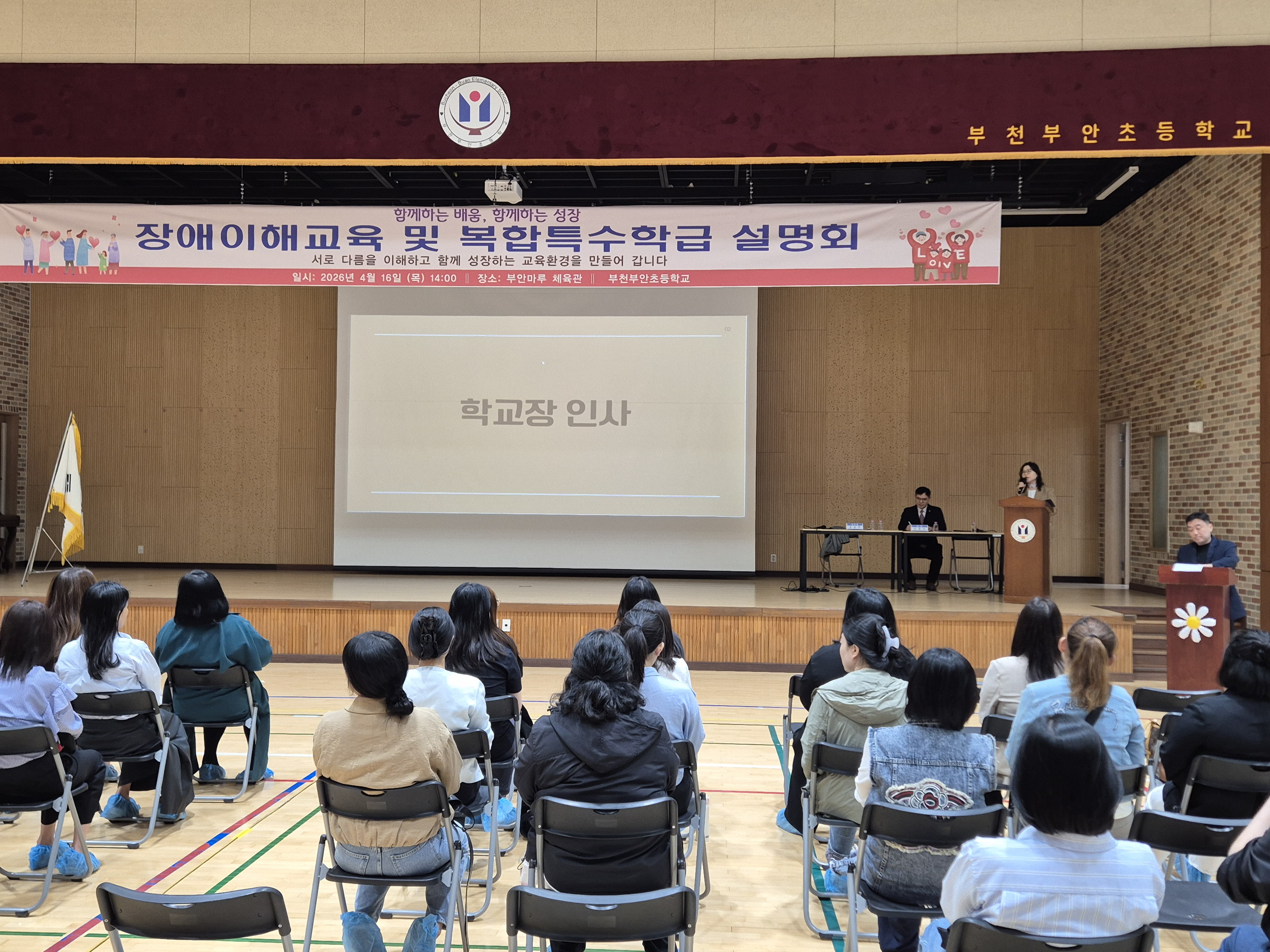 ºÎõºÎ¾ÈÃʵîÇб³(±³Àå ¹®¼øÁÖ)´Â 4¿ù 16ÀÏ(¸ñ) ±³³» ºÎ¾È¸¶·ç üÀ°°ü¿¡¼ '2026Çг⵵ Àå¾ÖÀÌÇØ ±³À° ¹× º¹ÇÕÆ¯¼öÇÐ±Þ ¼³¸íȸ'¸¦ °³ÃÖÇÏ¿´´Ù. À̹ø Çà»ç´Â º»±³ 1~6ÇÐ³â ¹× À¯Ä¡¿ø Çкθð¿Í Àü ±³Á÷¿øÀ» ´ë»óÀ¸·Î ÁøÇàµÇ¾ú´Ù.