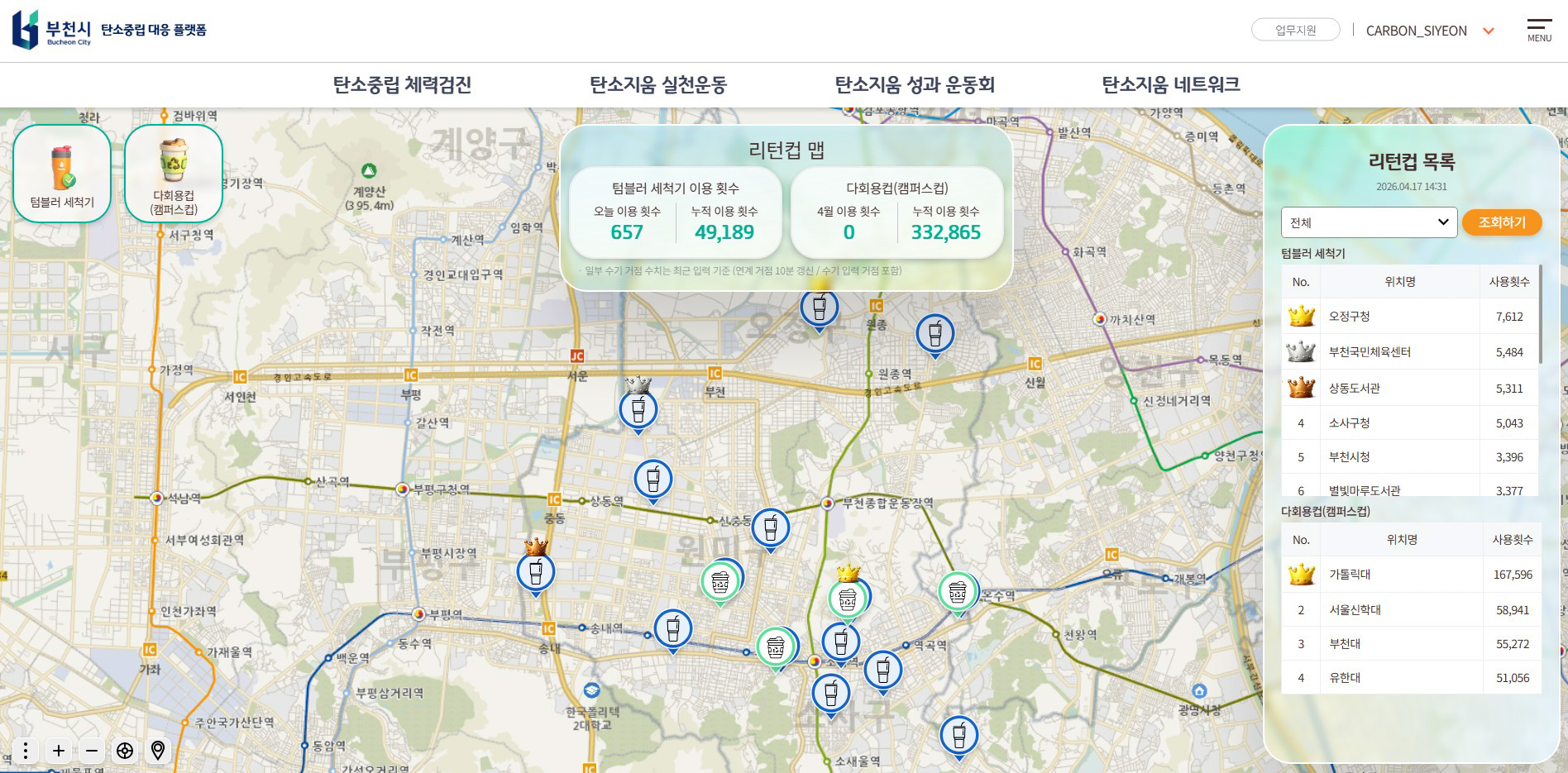 ºÎõ½Ã´Â ´Ùȸ¿ëÄÅ »ç¿ë ±â¹Ýµµ °ÈÇß´Ù. ½Ãû°ú ±¸Ã», µµ¼°ü, üÀ°½Ã¼³, ´ëÇÐ µî 15°÷¿¡ ÅÒºí·¯ ¼¼Ã´±â 18´ë¸¦ ¼³Ä¡ÇØ ÅÒºí·¯¸¦ À§»ýÀûÀ¸·Î »ç¿ëÇÒ ¼ö Àִ ȯ°æÀ» ¸¶·ÃÇß°í, ´©Àû ÀÌ¿ë Ƚ¼ö´Â 5¸¸ °ÇÀ» ³Ñ¾î¼¹´Ù.