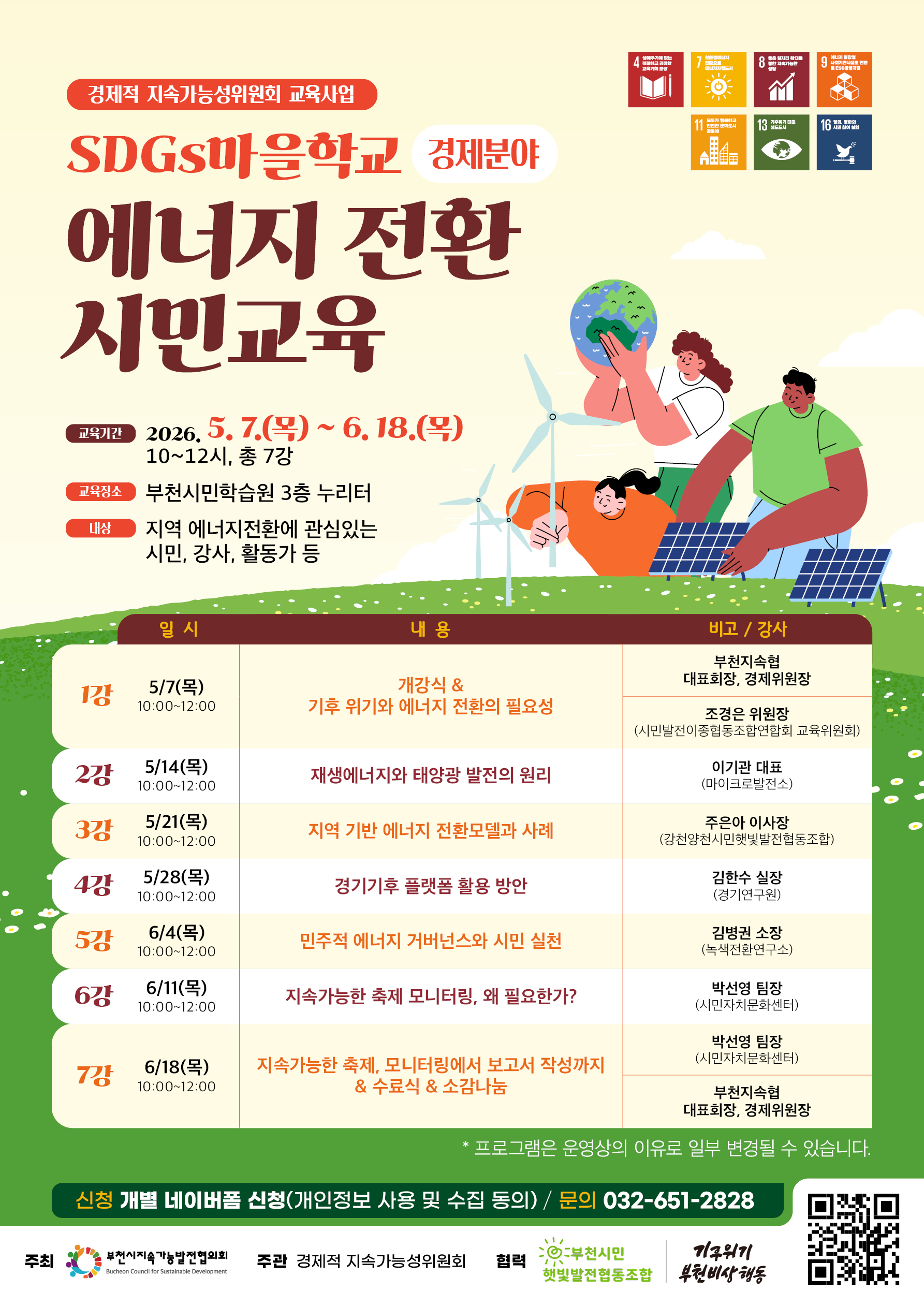 ºÎõ½ÃÁö¼Ó°¡´É¹ßÀüÇùÀÇȸ(´ëǥȸÀå Çã¿ø¹è, ÀÌÇÏ ºÎõÁö¼ÓÇù) °æÁ¦ÀûÁö¼Ó°¡´É¼ºÀ§¿øÈ¸(À§¿øÀå ¹Úµ¿¿Á)´Â Áö¿ª ±â¹ÝÀÇ Áö¼Ó°¡´É¹ßÀü ½ÇõÀ» È®»êÇϱâ À§ÇØ ¡®SDGs ¸¶À»Çб³ °æÁ¦ºÐ¾ß – ¿¡³ÊÁö Àüȯ ½Ã¹Î±³À°¡¯À» ¿î¿µÇϰí, Âü¿©ÇÒ ¼ö°»ýÀ» ¸ðÁýÇÑ´Ù°í ¹àÇû´Ù.