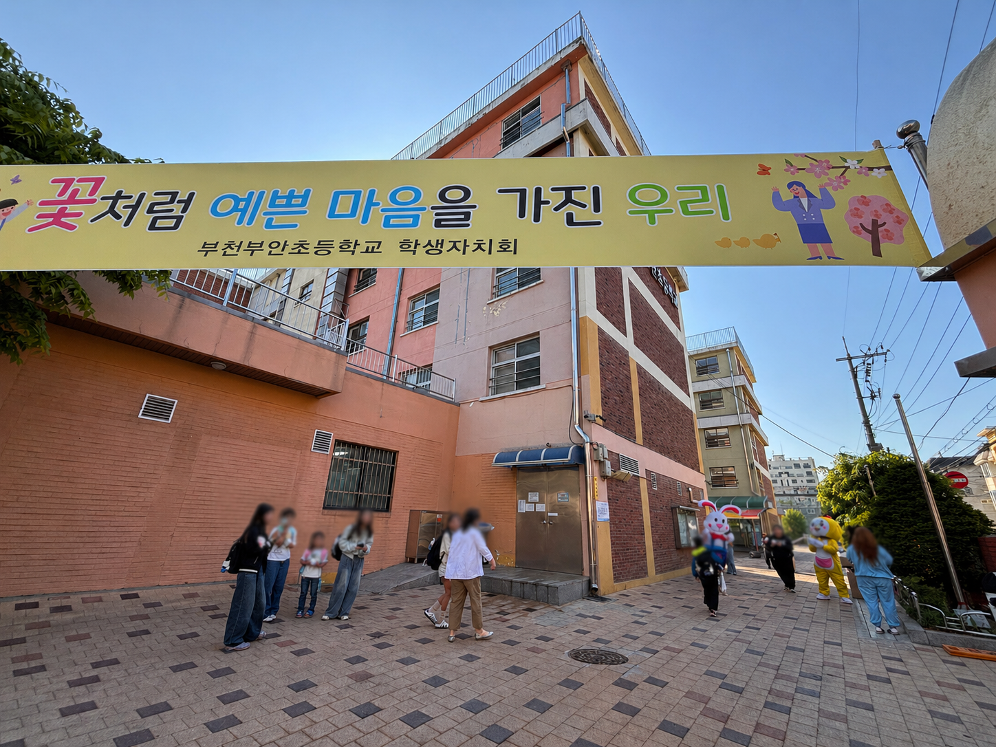 À̳¯ ¾ÆÄ§, Çб³ Á¤¹®°ú ÅëÇзο¡´Â ¡°²Éó·³ ¿¹»Û ¸¶À½À» °¡Áø ¿ì¸®¡±¶ó´Â ¹®±¸°¡ ´ã±ä Çö¼ö¸·ÀÌ °Ô½ÃµÇ¾î ÇлýµéÀ» ¹Ý°©°Ô ¸ÂÀÌÇÏ¿´´Ù. Çкθðȸ ȸ¿øµéÀÌ ¹àÀº Àλç¿Í ÇÔ²² Çлý ÇÑ ¸í ÇÑ ¸íÀ» ¸ÂÀÌÇÏ¸ç µû¶æÇÑ µî±·±æ ºÐÀ§±â¸¦ Á¶¼ºÇÏ¿´´Ù. ƯÈ÷ ij¸¯ÅÍ ÀÎÇü Å»À» Ȱ¿ëÇÑ À̺¥Æ®´Â ÇлýµéÀÇ Å« È£ÀÀÀ» ¾ò¾ú´Ù.