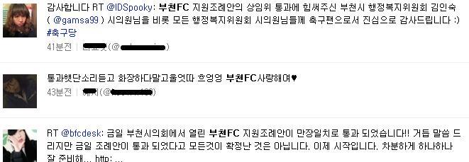 | ¡ãºÎõFCÁö¿øÁ¶·Ê¾ÈÀÌ ¸¸ÀåÀÏÄ¡·Î Åë°úµÆ´Ù´Â ¼Ò½ÄÀ» µè°í ºÎõFC°ü°èÀÚ°¡ °æ¸í¼ø ÀÇ¿ø¿¡°Ô °¨»çÀλ縦 ÀüÇϰí ÀÖ´Ù. |