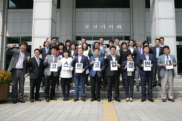 ºÎõ½ÃÀÇȸ 28¸íÀÇ Àüü ÀÇ¿øÀº ºÎõÀÇ Áö¿ª°æÁ¦¿Í Áß¼Ò»óÀÎÀÇ »îÀ» ³ª¶ôÀ¸·Î ³»¸ð´Â ¹Ì±¹°è À¯Åë¾÷ü ÄÚ½ºÆ®ÄÚÀÇ ¿ÀÁ¤¹°·ù´ÜÁö ³» ÀÔÁ¡À» ´ÙÀ½°ú °°Àº ÀÌÀ¯·Î ¹Ý´ëÇϸç ÀÔÁ¡ÀÌ °ÇàµÉ °æ¿ì Àü¸é ÅõÀï¿¡ ³ª¼³ °ÍÀ» õ¸íÇÑ´Ù.