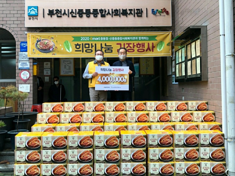 À̹ø Çà»ç´Â ¡®2020 emart Áßµ¿Á¡&½ÅÁßµ¿Á¾ÇÕ»çȸº¹Áö°ü°ú ÇÔ²² ÇÏ´Â 'Èñ¸Á³ª´® ±èÀå'À̶ó´Â ÁÖÁ¦·Î ¿ÃÇØ´Â Äڷγª-19·Î Á÷Á¢ ±èÀåÀ» ´ã±×´Â Ȱµ¿Àº »ý·«Çϰí, Á¡Àå ¹× Á÷¿øµéÀÌ ±èÀå±èÄ¡ 134»óÀÚ(°¢ 10kg)¸¦ º¹Áö°ü¿¡ Á÷Á¢ Àü´ÞÇØÁÖ´Â ¹æ½ÄÀ¸·Î ´ëüµÇ¾ú´Ù.