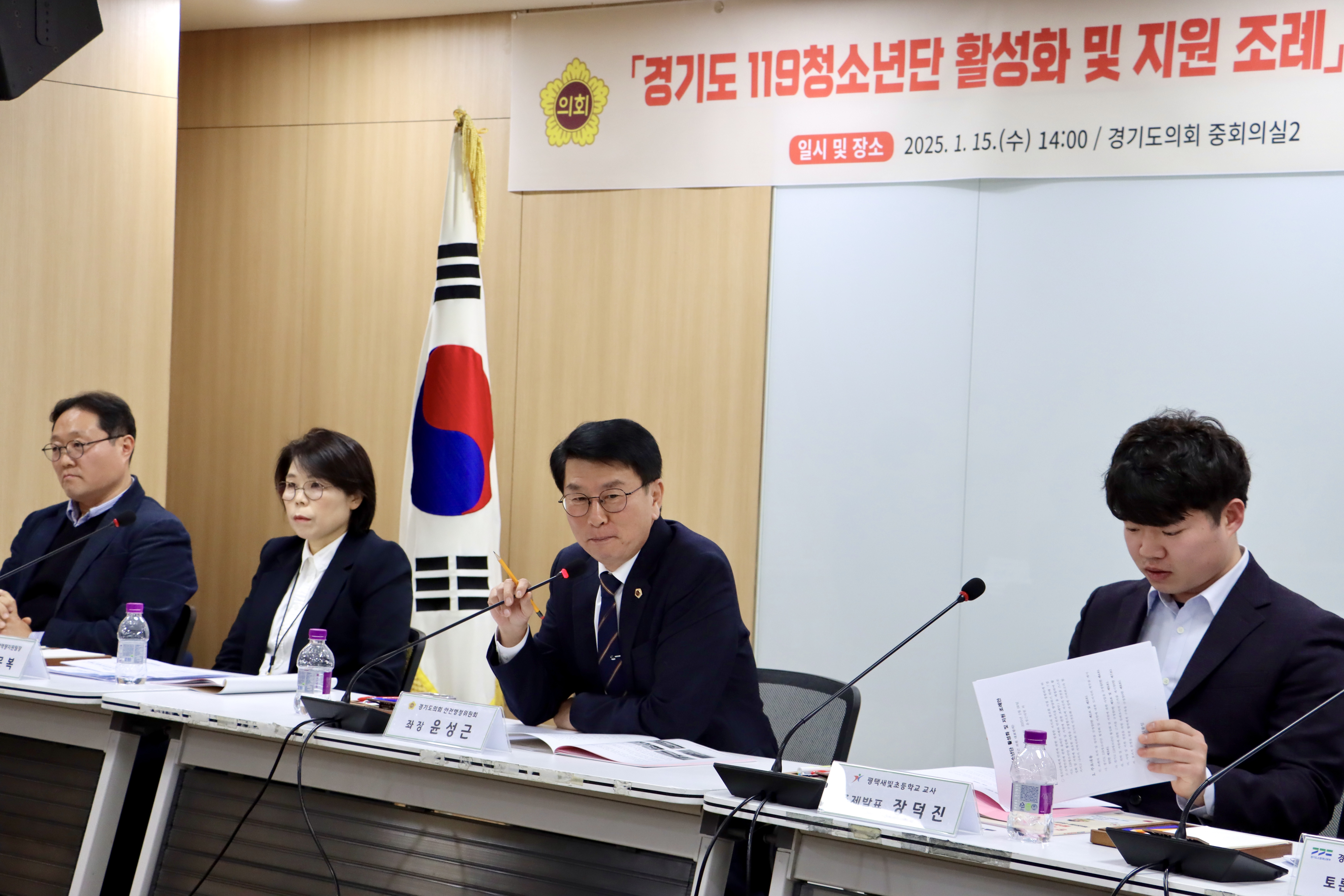 °æ±âµµÀÇȸ ¾ÈÀüÇàÁ¤À§¿øÈ¸ À±¼º±Ù ºÎÀ§¿øÀå(±¹Èû, ÆòÅÃ4)ÀÌ ÁÂÀåÀ» ¸ÃÀº ¡¸°æ±âµµ 119û¼Ò³â´Ü Ȱ¼ºÈ ¹× Áö¿ø Á¶·Ê¾È¡¹ Á¦Á¤À» À§ÇÑ ÀÔ¹ýÁ¤Ã¥Åä·Ðȸ°¡ Áö³ 15ÀÏ °æ±âµµÀÇȸ¿¡¼ ¼ºÈ²¸®¿¡ °³ÃֵƴÙ.