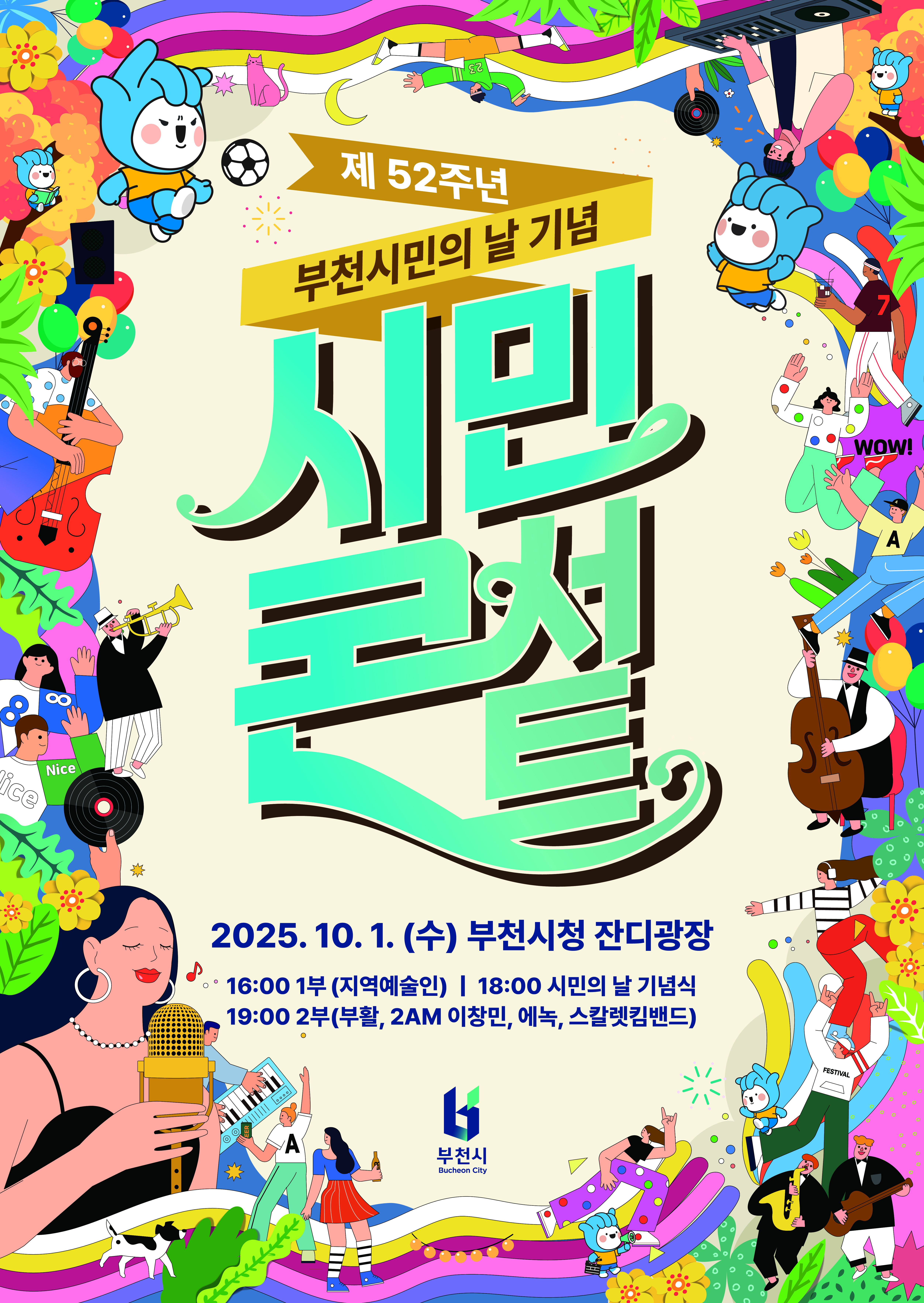 10¿ù 1ÀÏ ½Ãû Àܵð±¤Àå¿¡¼´Â Á¦52Áֳ⠺Îõ½Ã¹ÎÀÇ ³¯À» ±â³äÇÏ´Â ½Ã¹ÎÄܼƮ°¡ °³ÃֵȴÙ. 1ºÎ¿¡¼´Â ´Ù¾çÇÑ À帣ÀÇ Áö¿ª ¹®È¿¹¼úÀεéÀÌ ´Ùä·Î¿î ¹«´ë¸¦ ¼±º¸ÀδÙ. À̾îÁö´Â ±â³ä½Ä¿¡¼´Â ½Ã¹ÎµéÀÇ »ç¿¬À» ´ãÀº ¿µ»ó ¡®³»°¡ »ç¶ûÇÏ´Â ºÎõ¡¯À» »ó¿µÇØ ½Ã¹Îµé°ú ÇÔ²² Ưº°ÇÑ °¨µ¿À» ³ª´«´Ù. 2ºÎ¿¡´Â ºÎõ½Ã È«º¸´ë»ç ¿¡³ìÀ» ºñ·ÔÇØ ºÎȰ, ÀÌâ¹Î(2AM), ½ºÄ®·¿Å´ ¹êµå µî À¯¸í ¾ÆÆ¼½ºÆ®µéÀÌ Ãâ¿¬ÇØ ÄܼƮÀÇ ¿±â¸¦ ÇÑÃþ ´õ ¶ß°Ì°Ô ´Þ±¼ ¿¹Á¤ÀÌ´Ù.