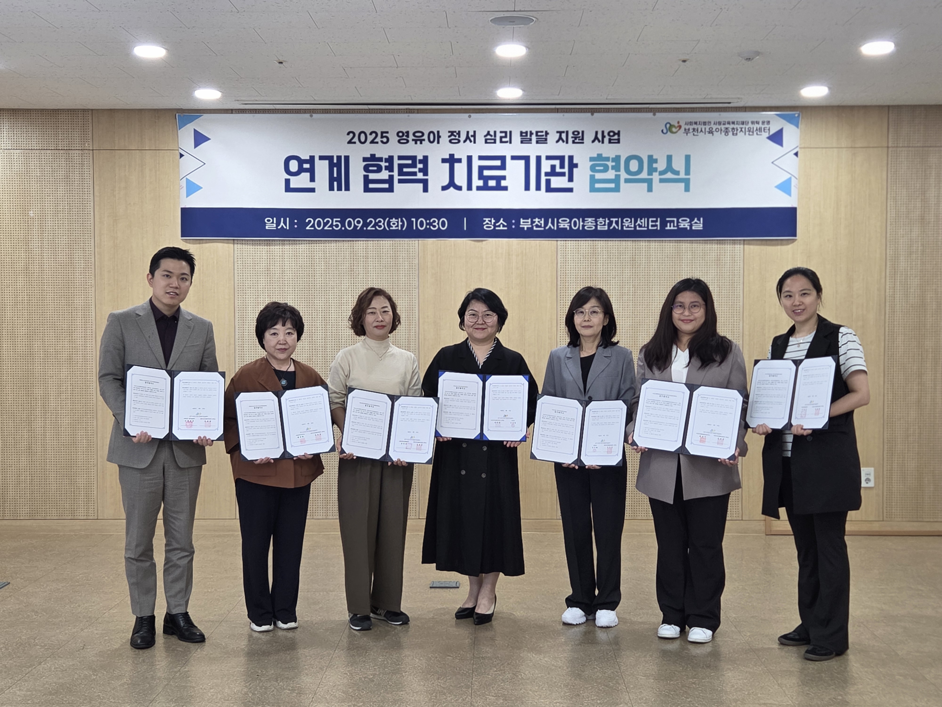 ºÎõ½ÃÀ°¾ÆÁ¾ÇÕÁö¿ø¼¾ÅÍ´Â Áö³ 23ÀÏ °æ±âµµ±³À°Ã» À¯º¸ÅëÇÕÁغñ´Ü°ú ÇÔ²² ÃßÁø ÁßÀÎ ¿µÀ¯¾Æ Á¤¼‧½É¸® ¹ß´ÞÁö¿ø »ç¾÷ÀÇ ÀÏȯÀ¸·Î, ºÎõ½Ã ³»ÀÇ ½É¸®‧Á¤¼ Ä¡·á Àü¹®±â°ü°ú ¡®¿µÀ¯¾Æ Á¤¼‧½É¸® ¹ß´ÞÁö¿ø ¾÷¹«Çù¾à¡¯À» ü°áÇß´Ù.