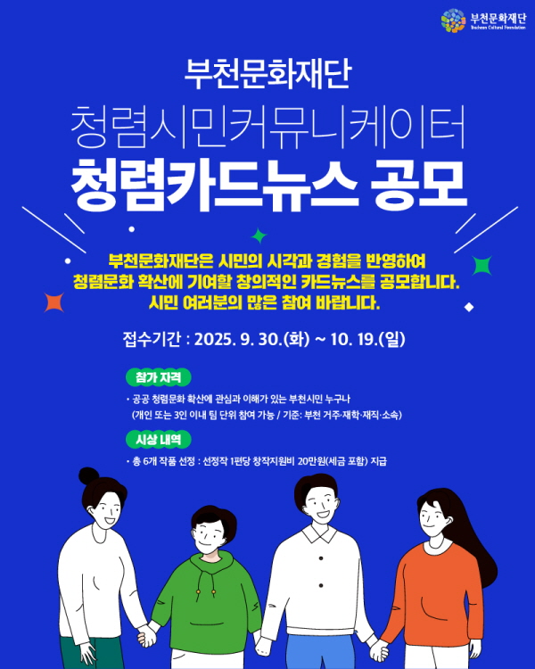 °ø¸ð Á¢¼ö´Â 9¿ù 30ÀϺÎÅÍ 10¿ù 19ÀϱîÁö ÁøÇàµÇ¸ç, ºÎõ½Ã¿¡ °ÅÁÖÇϰųª ÀçÇС¤ÀçÁ÷¡¤¼Ò¼ÓµÈ ½Ã¹ÎÀÌ¸é ´©±¸³ª ÀÀ¸ðÇÒ ¼ö ÀÖ´Ù. °³ÀÎ»Ó ¾Æ´Ï¶ó 3ÀÎ ÀÌÇÏÀÇ ÆÀ ´ÜÀ§ Âü¿©µµ °¡´ÉÇϸç, û¼Ò³â°ú û³âÀº ¹°·Ð ÁßÀå³âÃþ°ú ½Ã´Ï¾î µî Æø³ÐÀº ¿¬·ÉÃþÀÇ ½Ã¹ÎÀÇ ´Ù¾çÇÑ ¾ÆÀ̵ð¾î Âü¿©°¡ ±â´ëµÈ´Ù.