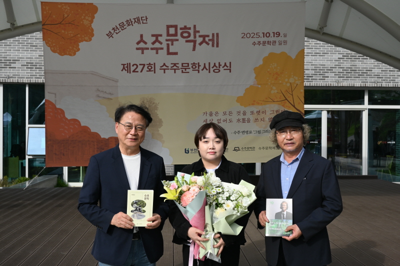 À̹ø ÃàÁ¦¿¡¼´Â ¡®Á¦27ȸ ¼öÁÖ¹®Çлó ½Ã»ó½Ä¡¯À» ºñ·ÔÇØ ¹®ÇÐÀÌ ½Ã¹ÎÀÇ ÀÏ»ó ¼Ó¿¡ ½º¸çµå´Â ´Ùä·Î¿î ÇÁ·Î±×·¥ÀÌ ÁøÇàµÆ´Ù. ÇѺ´È¯ ºÎõ¹®ÈÀç´Ü ´ëÇ¥ÀÌ»çÀÇ °³È¸»ç·Î ¹®ÇÐÁ¦°¡ ½ÃÀÛµÆÀ¸¸ç, ÇÔ²² ÃÖÀº°æ ºÎõ½ÃÀÇ¿ø, À±´Üºñ ºÎõ½ÃÀÇ¿ø, ¹ÚÈñÁÖ ¼öÁÖ¹®ÇÐÁ¦ ¿î¿µÀ§¿øÀåÀÇ Ãà»ç¿Í ÇÔ²² ¼ÛÀÏÃʵîÇб³ 5Çг⠱èÁö¹Î ÇлýÀÌ º¯¿µ·Î ¡®º½ºñ¡¯ Ãà½Ã ³¶¼ÛÇϸç ÃàÁ¦ÀÇ ¹®À» ¿¾ú´Ù.