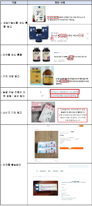 ¡®Å°Å©´Â Áֻ硯 µîÀÇ Ç¥ÇöÀ¸·Î ½Äǰ µî ºÎ´ç±¤°í °Ô½Ã±Û 153°Ç, ÀǾàǰ(¼ºÀåÈ£¸£¸óÁ¦) ºÒ¹ýÆÇ¸Å °Ô½Ã¹° 66°Ç µî 219°ÇÀÇ À§¹ÝÇàÀ§°¡ Àû¹ßµÆ´Ù.