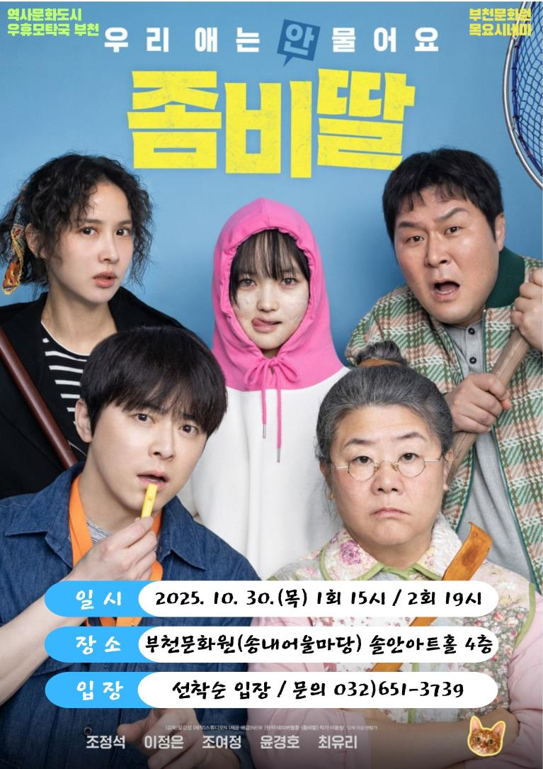 ºÎõ¹®È­¿øÀº Áö¿ª ÁÖ¹ÎÀÇ ¹®È­ ÇâÀ¯ ±âȸ¸¦ È®´ëÇϱâ À§ÇØ ¸Å¿ù ¸¶Áö¸· ÁÖ ¸ñ¿äÀÏ¿¡ ÁøÇàÇÏ´Â ¹«·á¿µÈ­»ó¿µÈ¸ÀÇ 10¿ù ÀÛǰÀ¸·Î ¡®Á»ºñµþ¡¯À» ¼±Á¤Çß´Ù. »ó¿µÀº ¿À´Â 10¿ù 30ÀÏ(¸ñ) ¿ÀÈÄ 3½Ã¿Í 7½Ã, ºÎõ¹®È­¿ø ¼Ö¾È¾ÆÆ®È¦¿¡¼­ 2ȸ¿¡ °ÉÃÄ ÁøÇàµÈ´Ù.