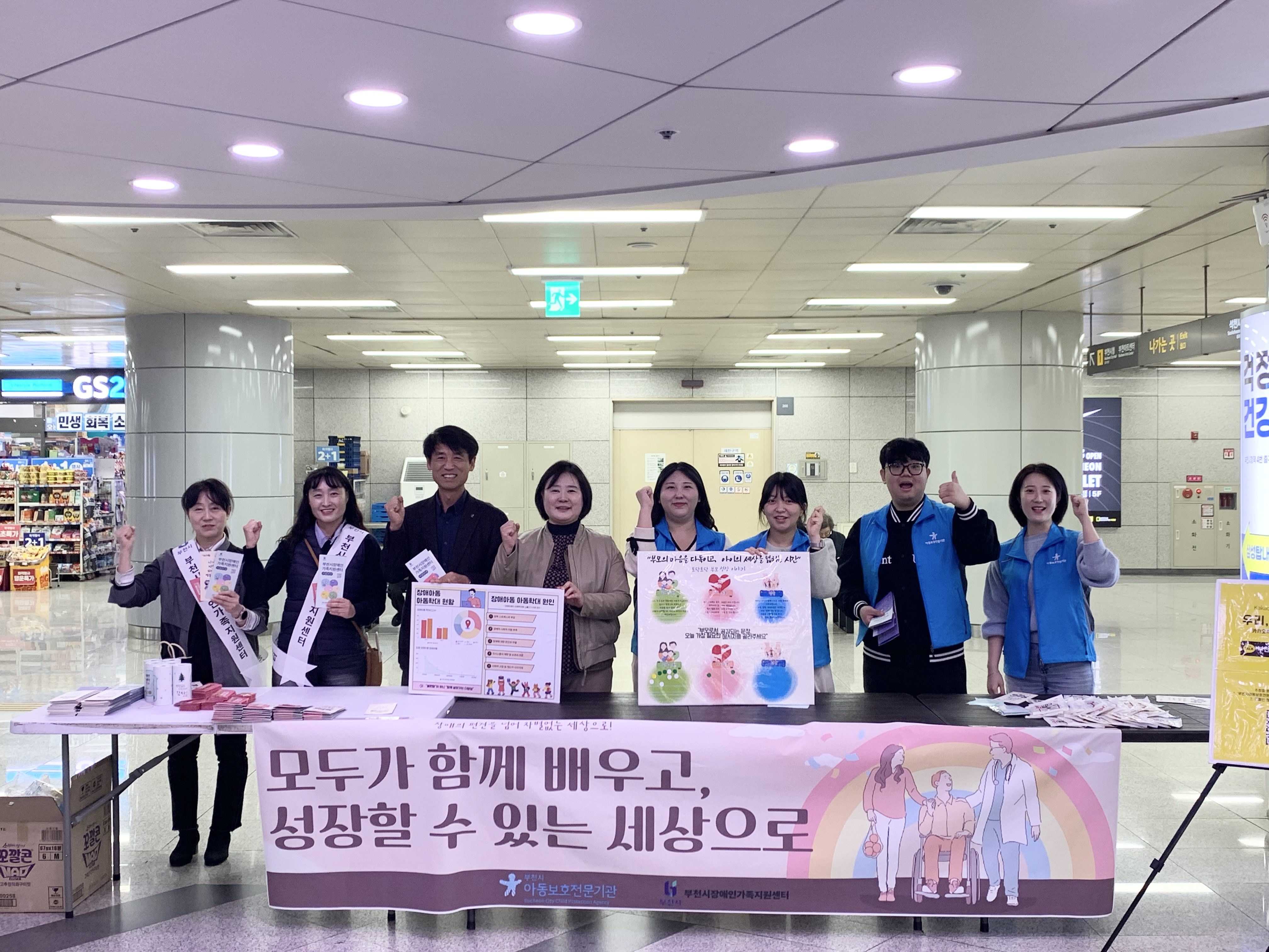 ºÎõ½Ã¾Æµ¿º¸È£Àü¹®±â°üÀº 10¿ù 30ÀÏ, ºÎõ½ÃÀå¾ÖÀΰ¡Á·Áö¿ø¼¾ÅÍ¿Í ÇÔ²² ºÎõ½Ãû¿ª»ç¿¡¼­ Àå¾Ö¾Æµ¿ Àνݳ¼± Ä·ÆäÀÎÀ» ÁøÇàÇß´Ù.